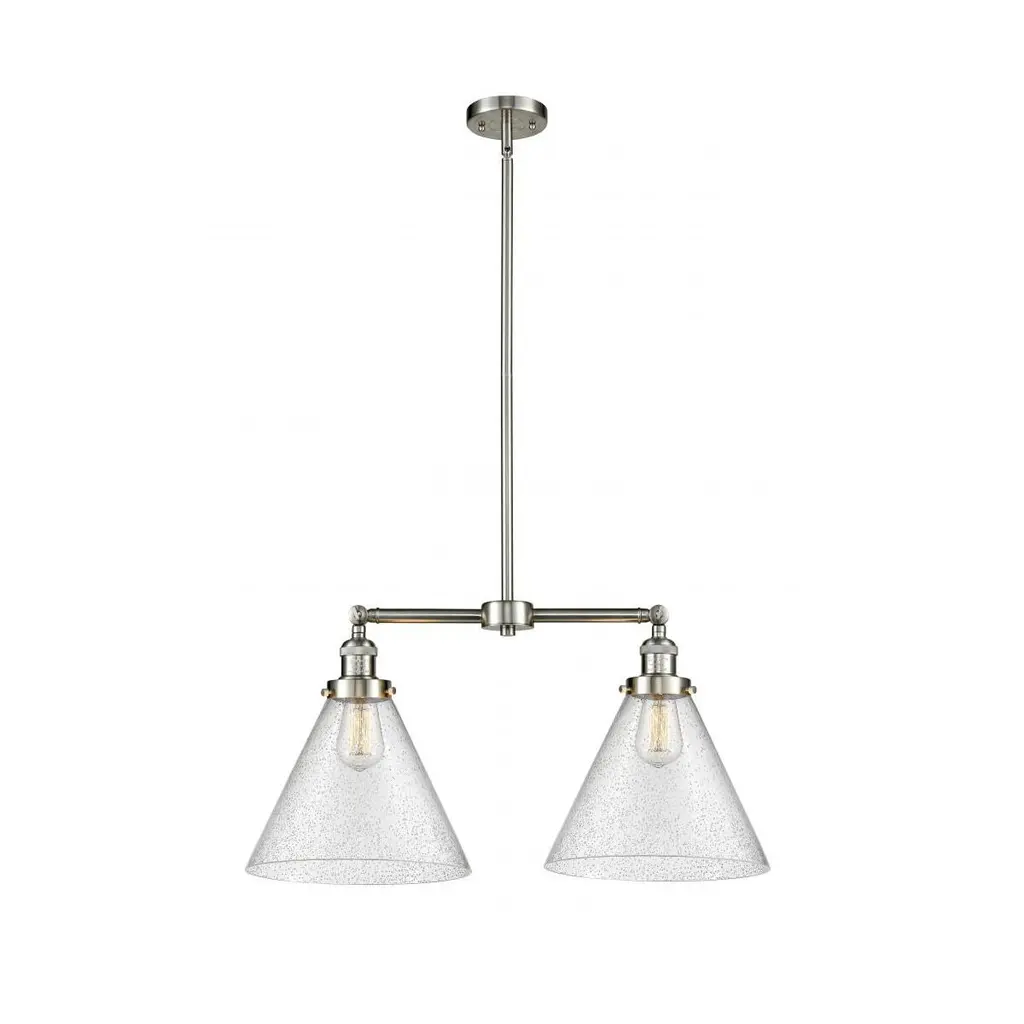 Franklin Restoration X-Large Cone 2 Light 21 Inch Oil Rubbed Bronze Chandelier Ceiling Light In Seedy Glass, Franklin Restoration