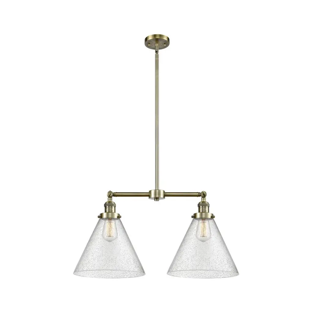 The X-Large Cone 2 Light Chandelier is part of the Franklin Restoration Collection. Includes 1-6 and 2-12 inch Stems. Additional Stems sold separately.. Additional Stems sold separately.. Solid Brass 180 Degree Adjustable Swivels with internal teeth that lock in at 5 degree intervals With Engraved Cast Cup. Solid Brass 90 Degree Hang Straight Swivel for Sloped Ceilings Included