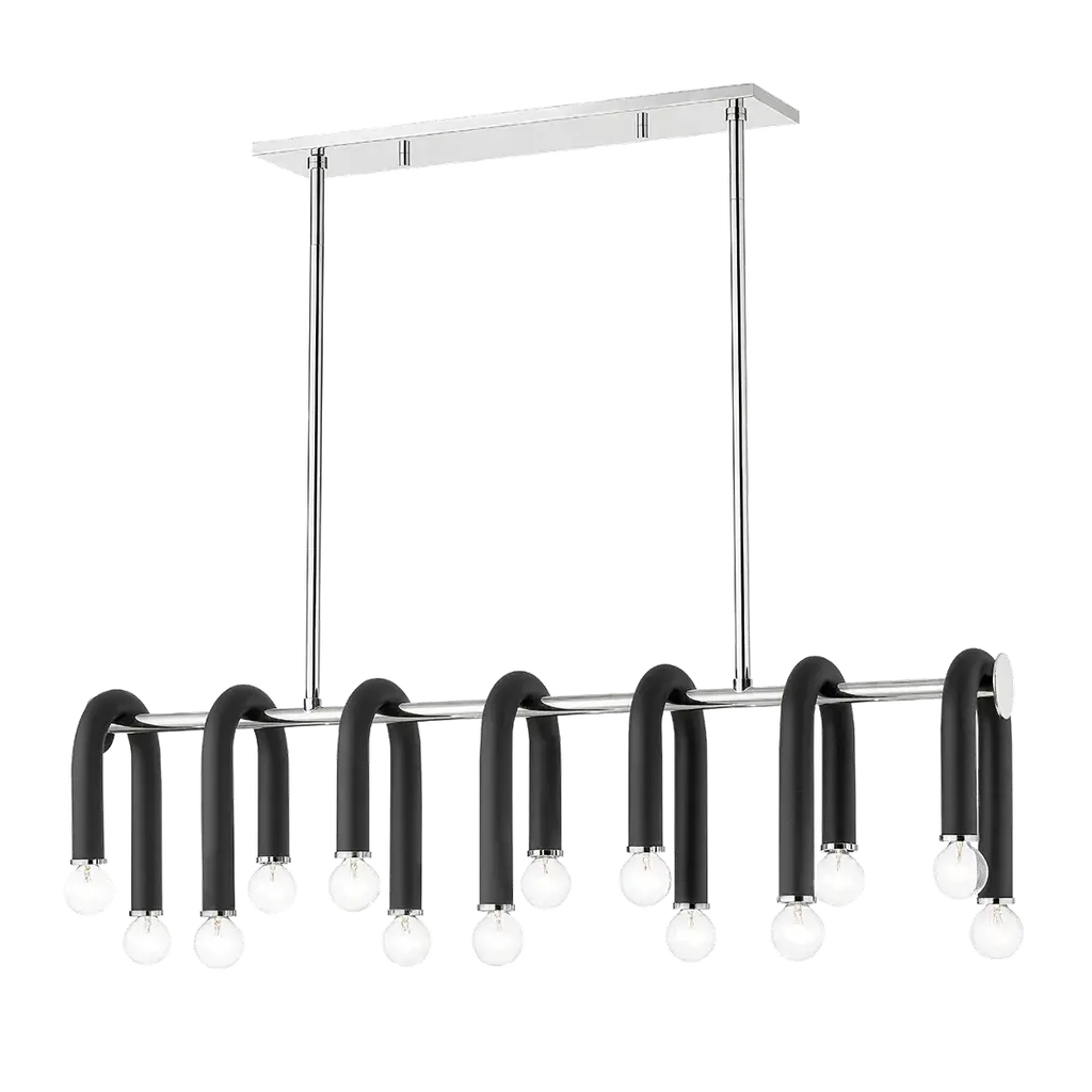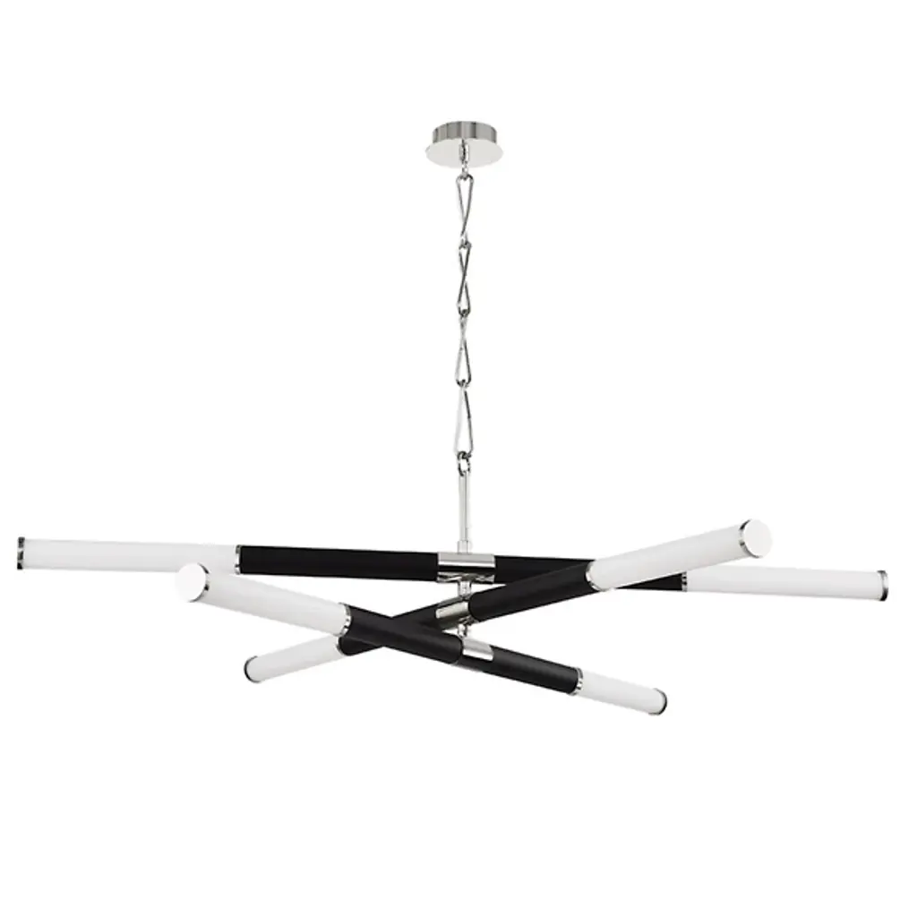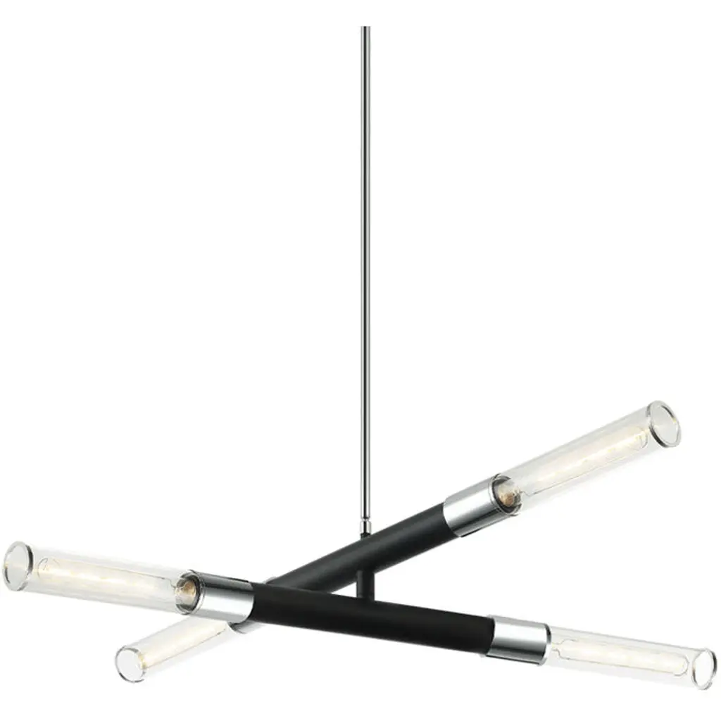 Dashes of light dance overhead with the sculptural design of the Fredo Chandelier from Huxe. It takes a page from mid-century design in its clear forms and bold finishes. The chandelier enters the room gracefully with an ultra-fine downrod suspension. From this downrod, a 2-tone composition of stems each produces a clear glass shade capped with a chic ring accent. The crispness of the glass enhances the brilliance of the bright bulbs. These bulbs face toward the room’s walls to generate a warm, encompassing aura and a memorable silhouette of lines.