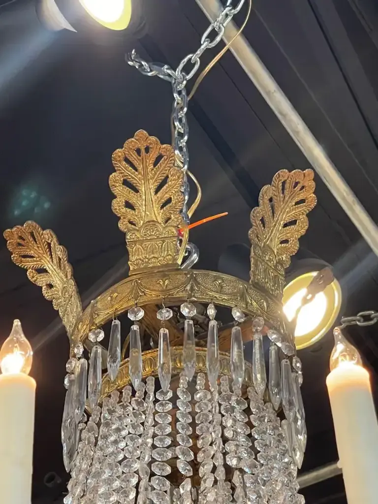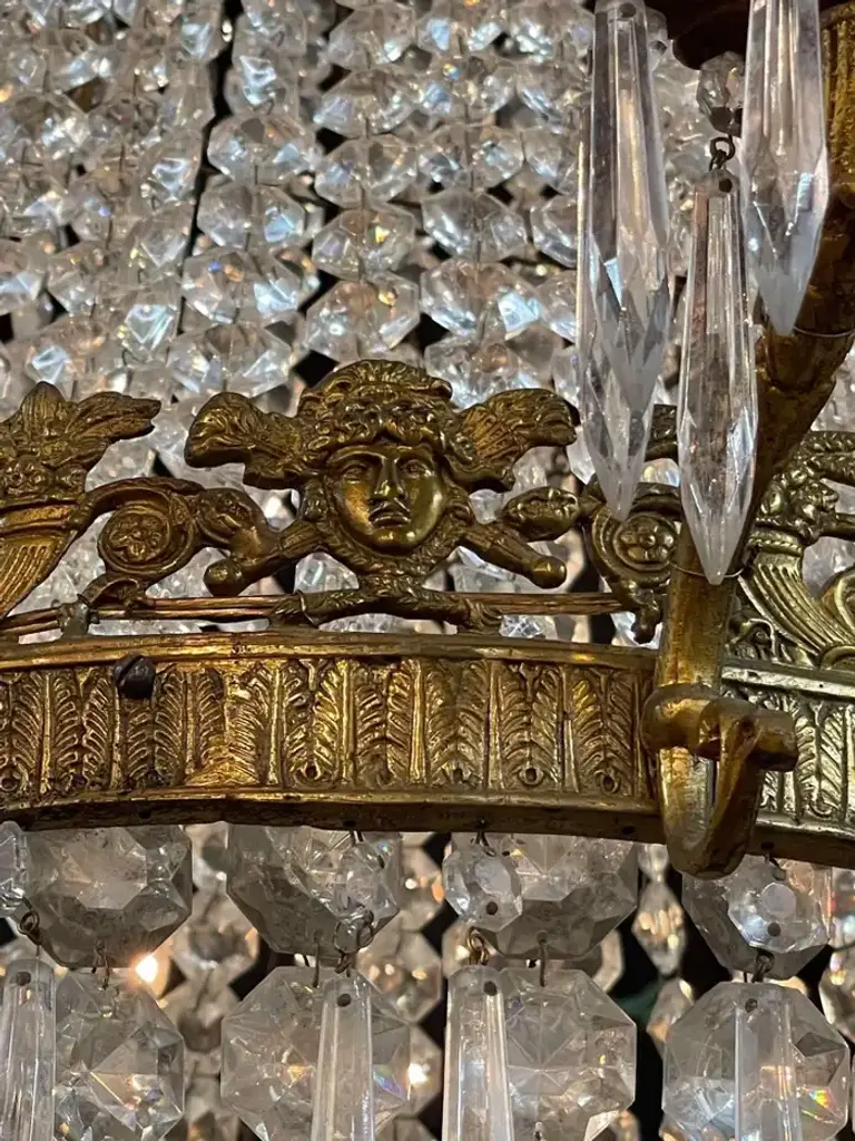 French Empire Bronze And Crystal Chandelier