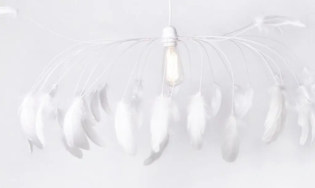 French chandelier in goose feathers and painted white metal, handmade in France by the artist.