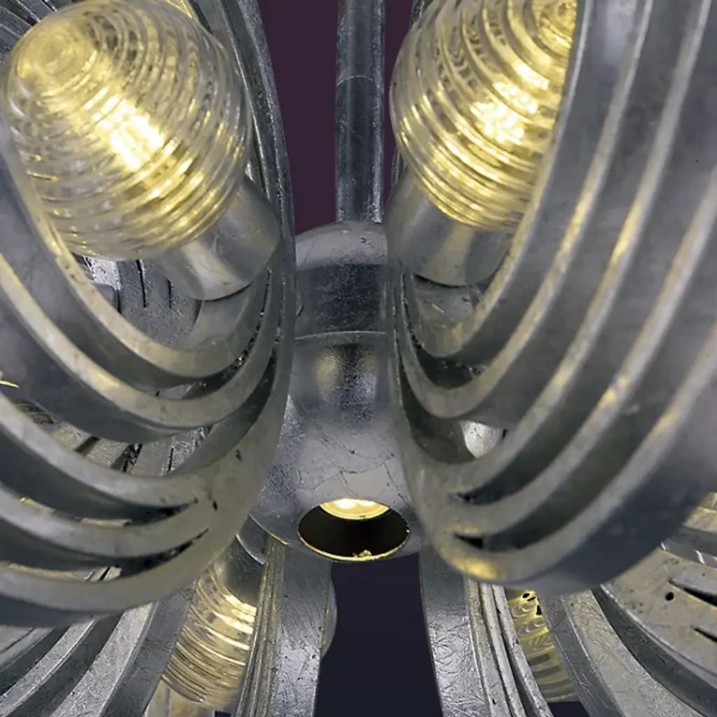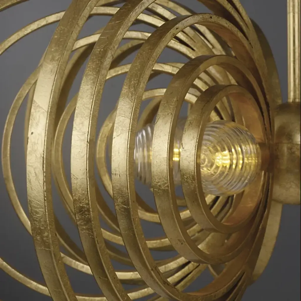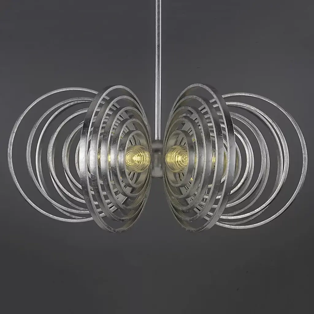 Could you repeat that? Sorry, I couldn’t hear you over the Frequency LED Chandelier by Studio M. Its beautiful avant-garde design is quite booming, what with its groups of concentric Steel circles that each emanate from a central Clear Glass shade which itself has a grooved, rippling design. The LED lighting is really something though, isn’t it, shining through the glass for a beautiful underwater distortion that complements the natural warmth of the finish. What? Just nod if you understand what I’m saying.