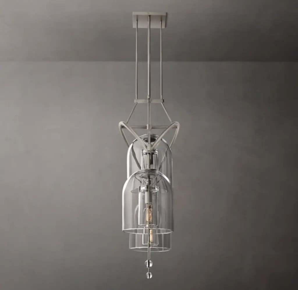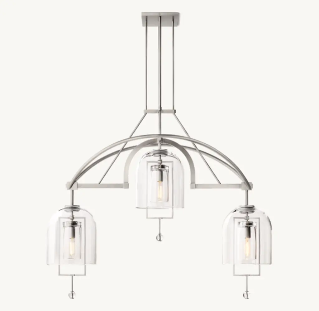 Antique scales and other instruments of measure inspired this collection by master glass designer Alison Berger, in which cloches and spheres of blown glass are suspended from metal frames in perfect equipoise. Blurring the line between lighting and sculpture, each piece acts as a radiant focal point and a potent symbol of balance. SHOP THE ENTIRE COLLECTION