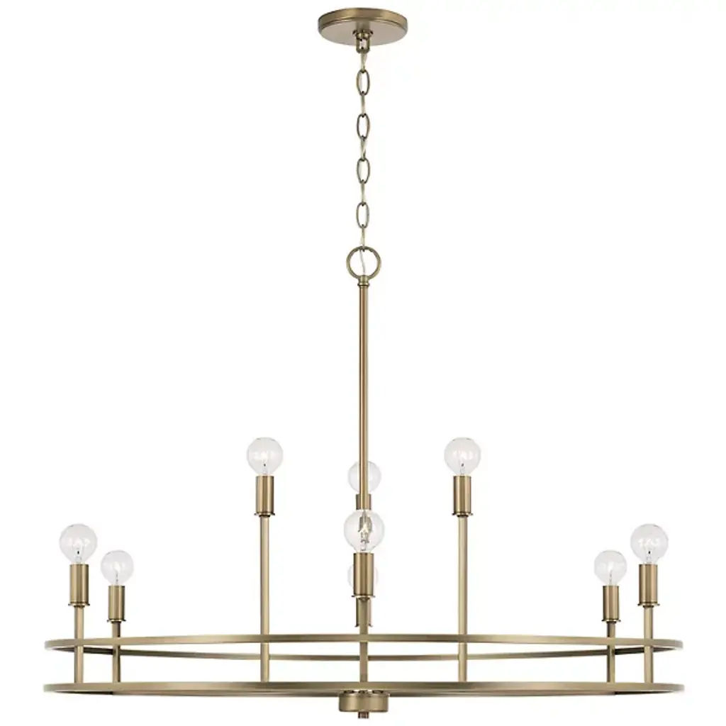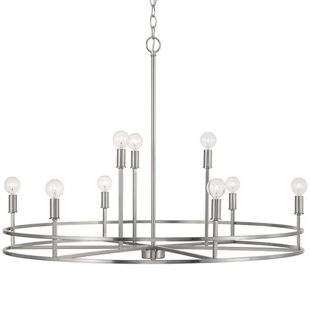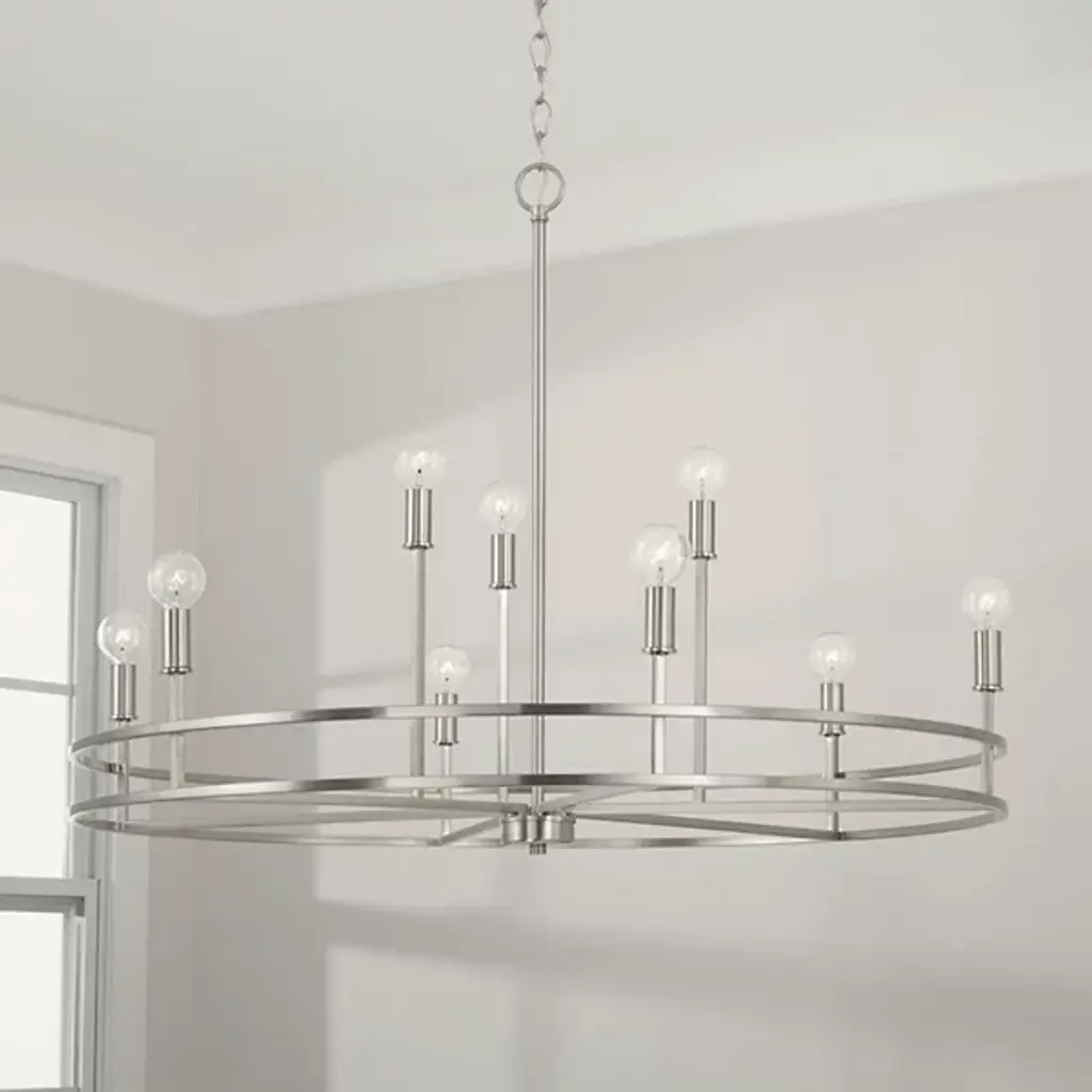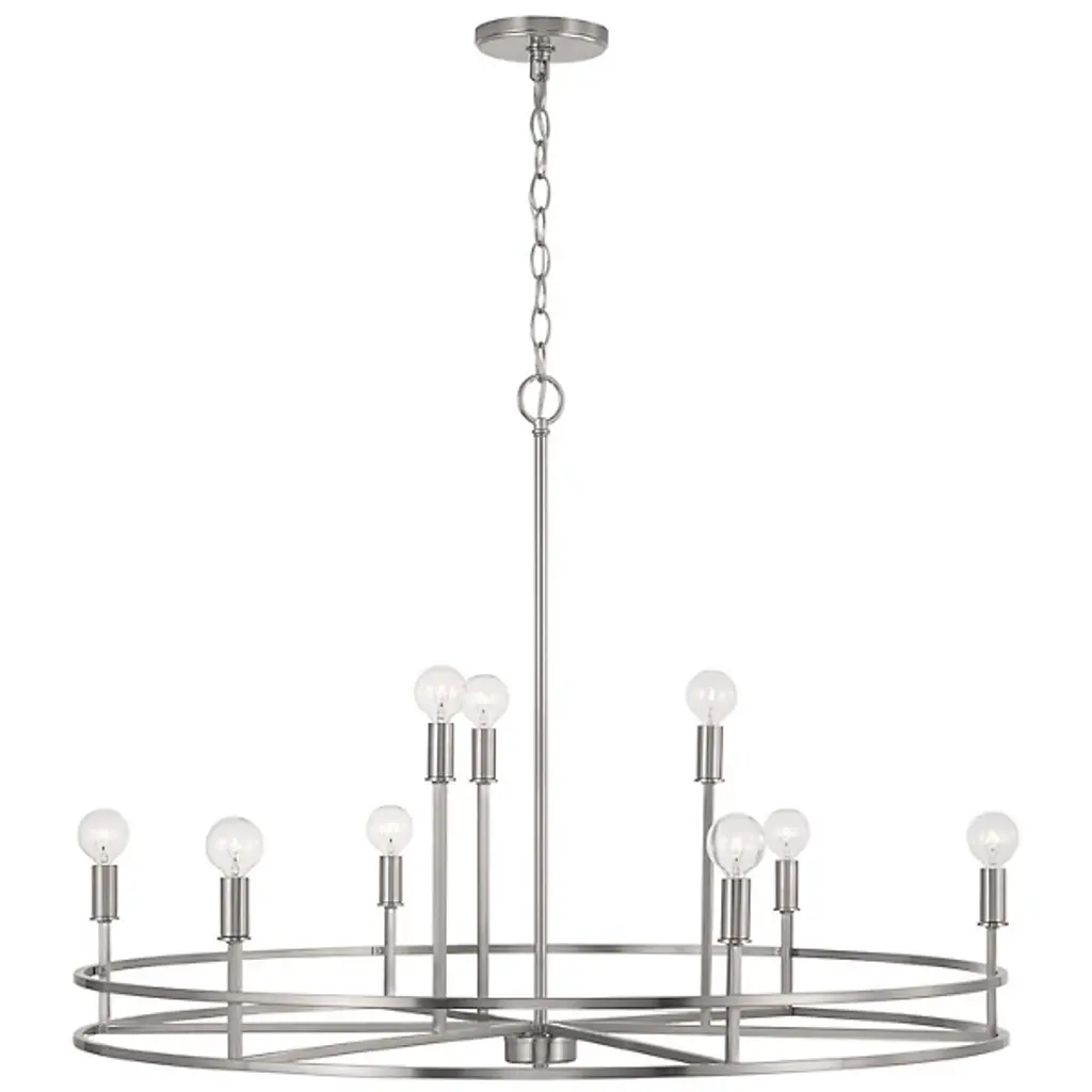 Clean lines and a contemporary shape create the Fuller 2-Tier Chandelier by Capital Lighting. A collection of candelabra base incandescent lamps neatly lines your chandelier’s ring-shaped metal framework, Illuminating your living space with ease. This 2-tier light fixture is secured by a canopy at your ceiling, allowing light to project in an overhead fashion.