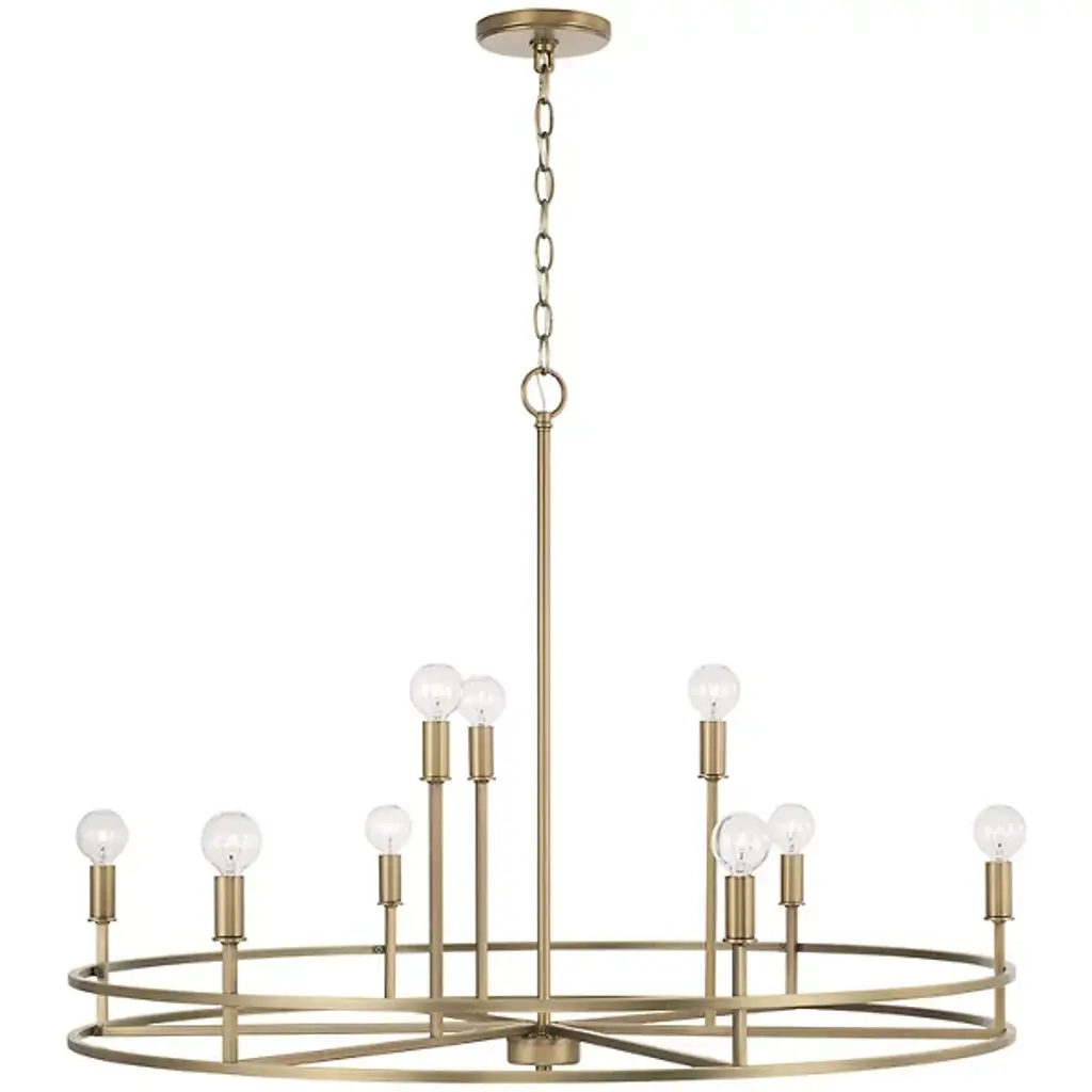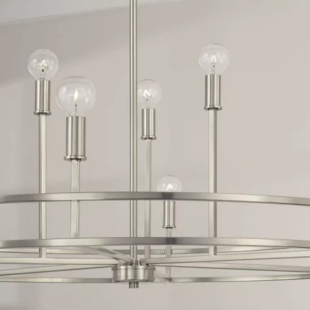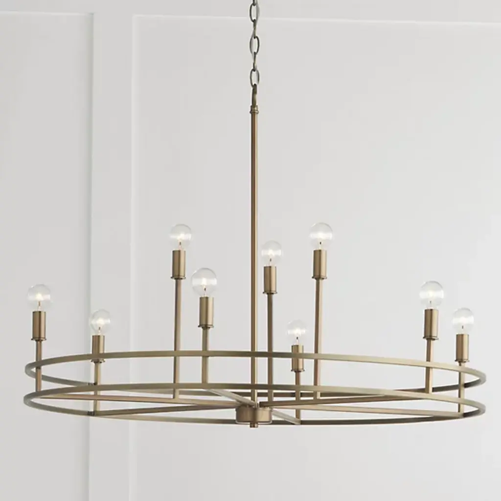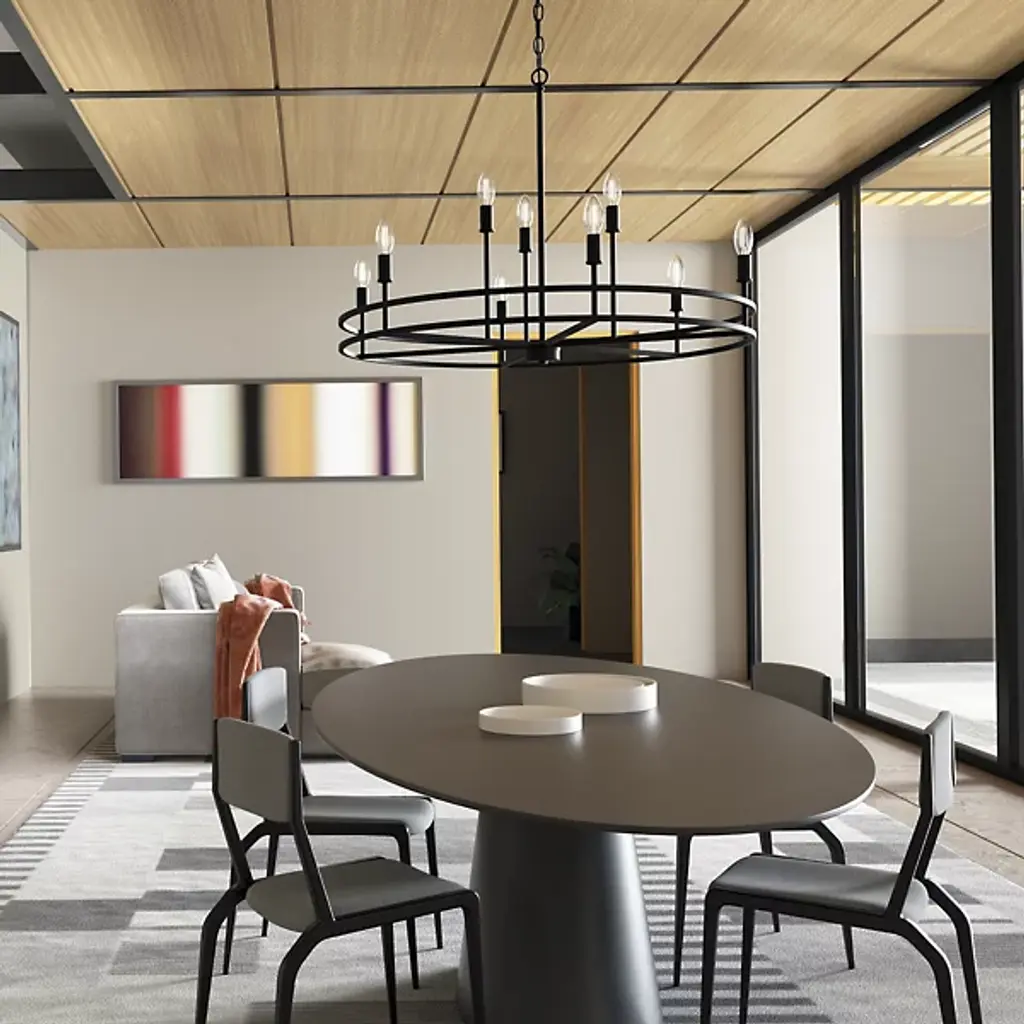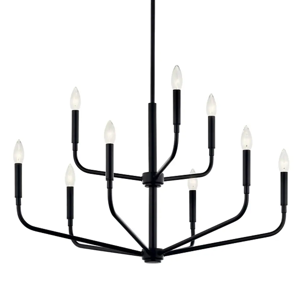 Clean lines and a contemporary shape create the Fuller 2-Tier Chandelier by Capital Lighting. A collection of candelabra base incandescent lamps neatly lines your chandelier’s ring-shaped metal framework, Illuminating your living space with ease. This 2-tier light fixture is secured by a canopy at your ceiling, allowing light to project in an overhead fashion.