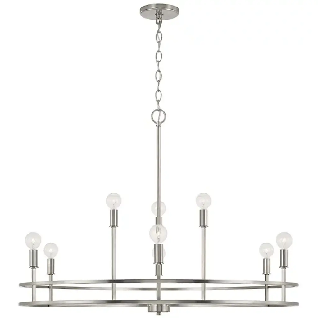 Clean lines and a contemporary shape create the Fuller 2-Tier Chandelier by Capital Lighting. A collection of candelabra base incandescent lamps neatly lines your chandelier’s ring-shaped metal framework, Illuminating your living space with ease. This 2-tier light fixture is secured by a canopy at your ceiling, allowing light to project in an overhead fashion.