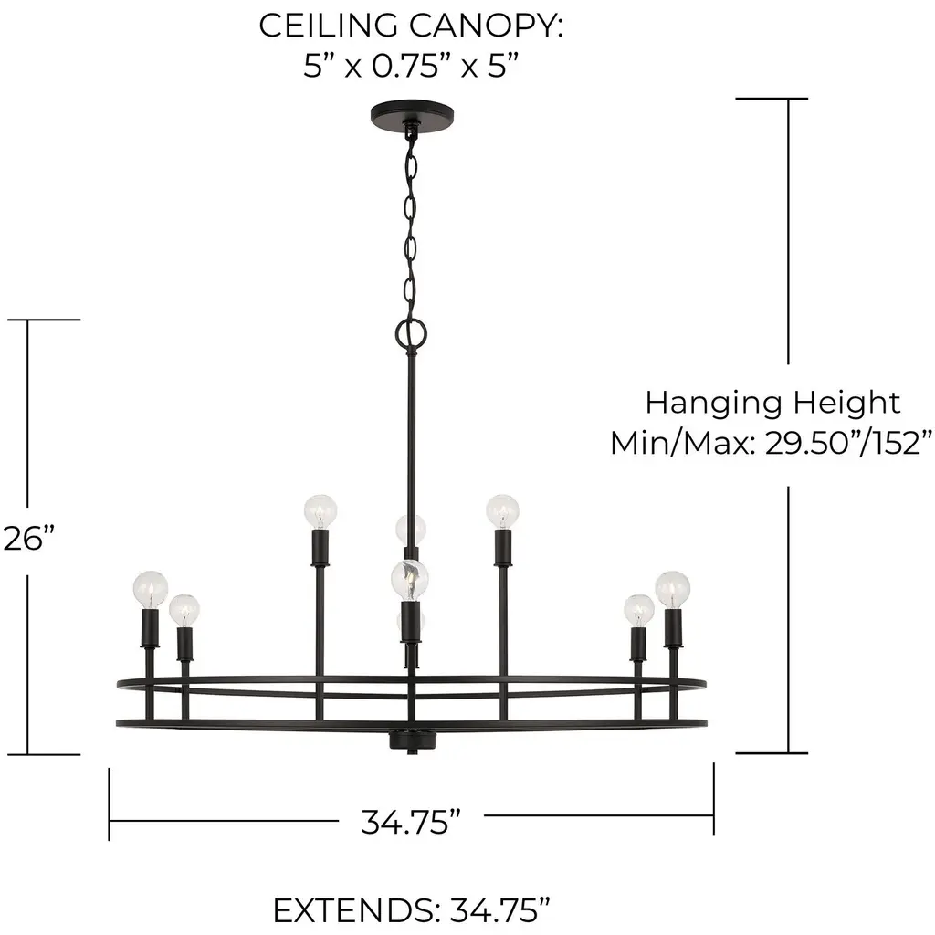 Fuller 9 Light 34.75 Inch Matte Black Chandelier Ceiling Light