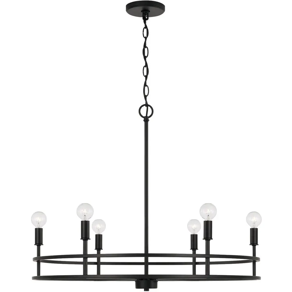Sleek lines and a contemporary shape create the Fuller 9-Light Chandelier for HomePlace. Staggered tiers of light illuminate the circular form, while the Matte Black finish brings modern sophistication to any space.