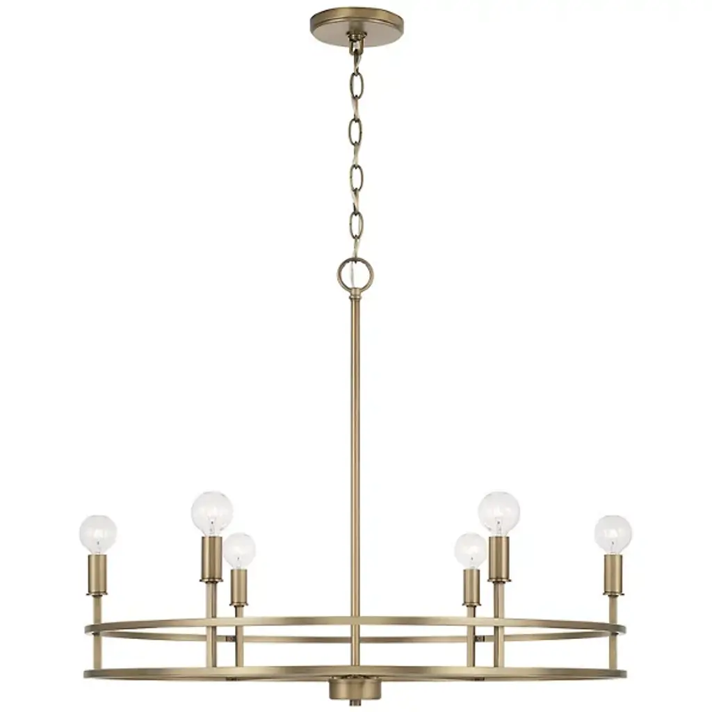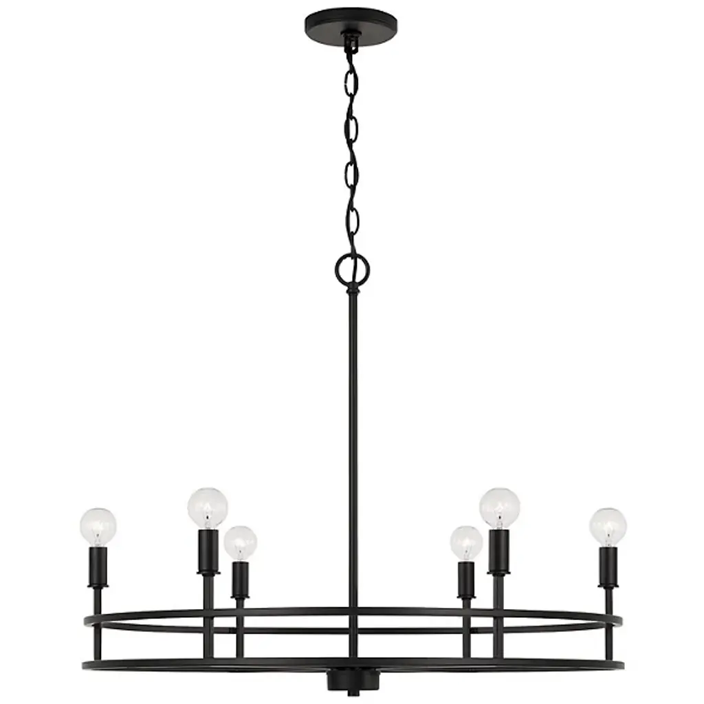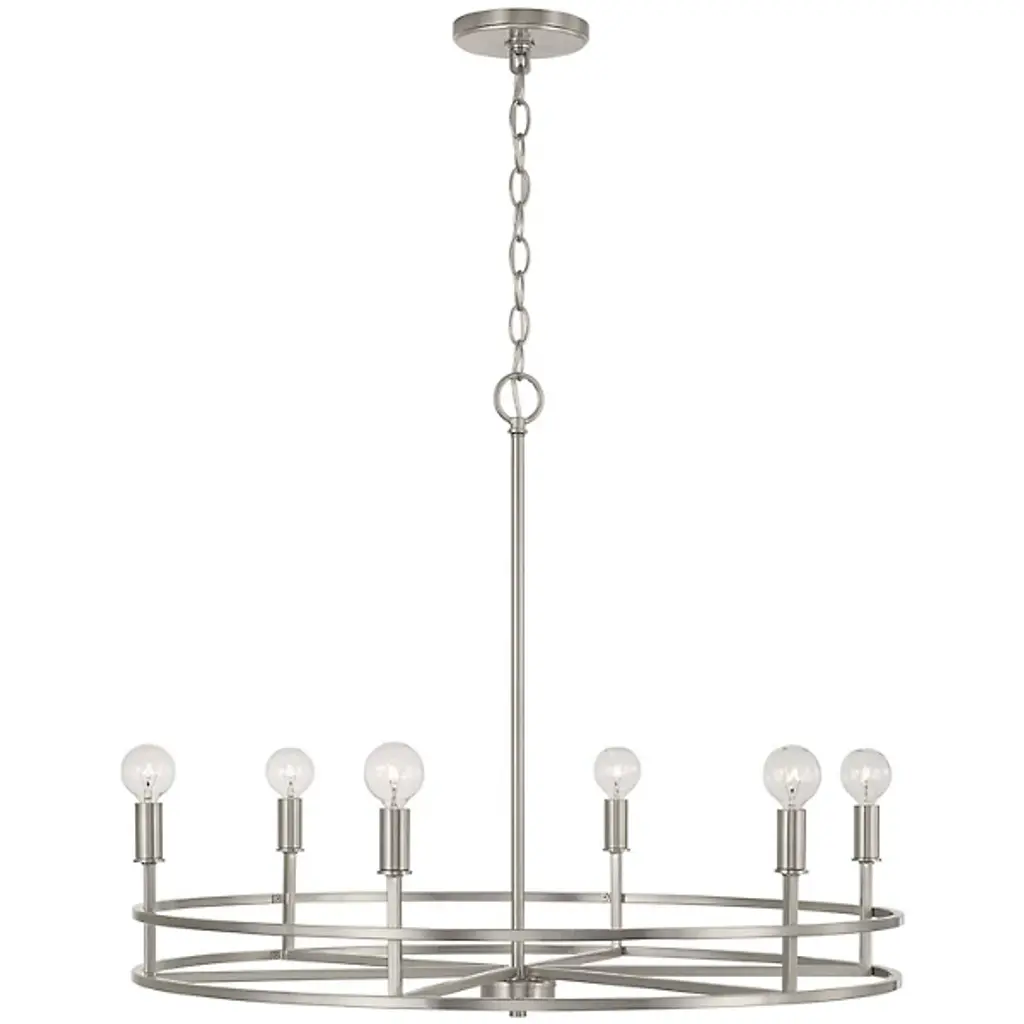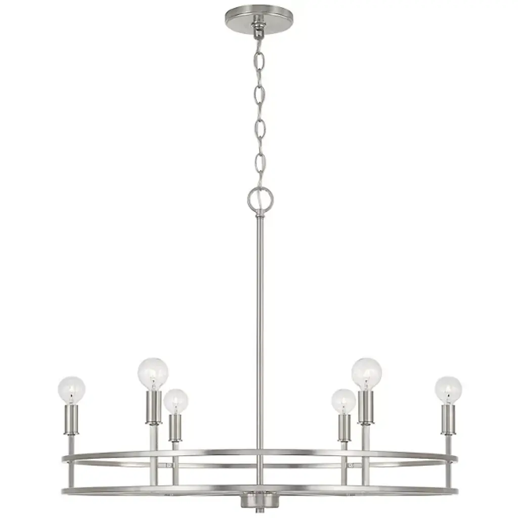 Clean lines and a contemporary shape create the Fuller Chandelier by Capital Lighting. A collection of LED lamps neatly lines your chandelier’s ring-shaped metal framework, Illuminating your living space with ease. This multi-light fixture is secured by a canopy at your ceiling, allowing light to project in an overhead fashion.
