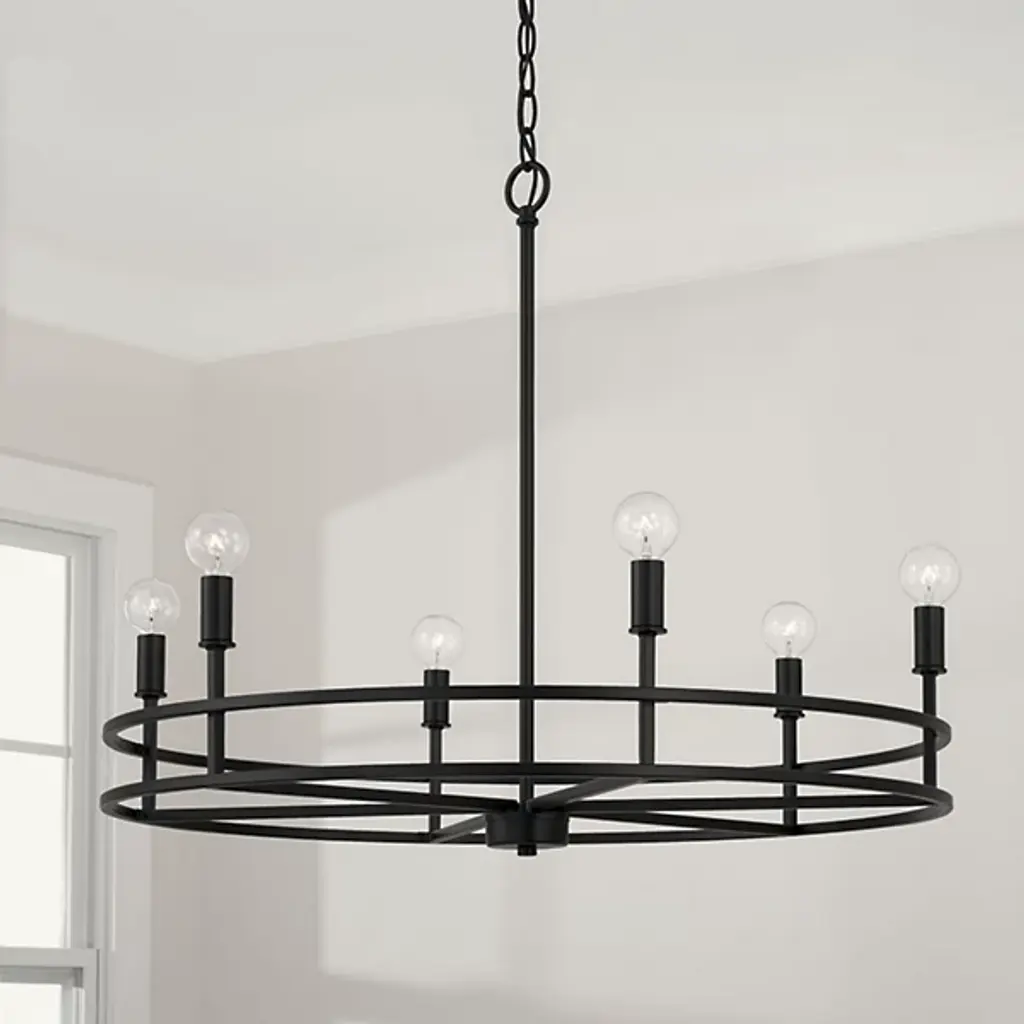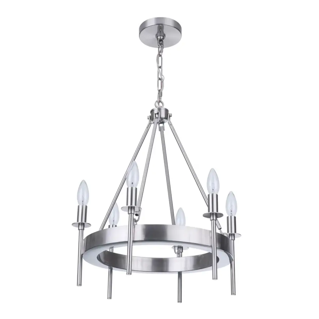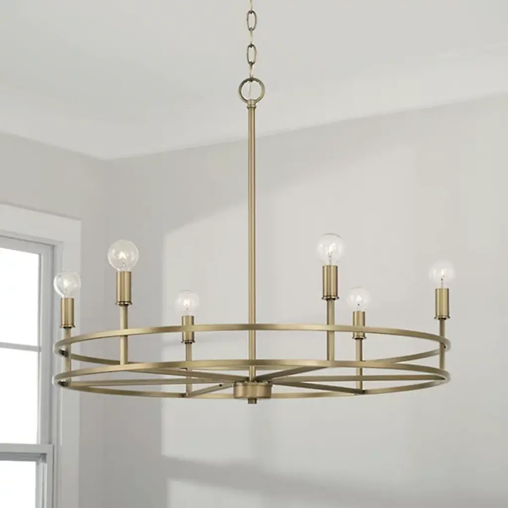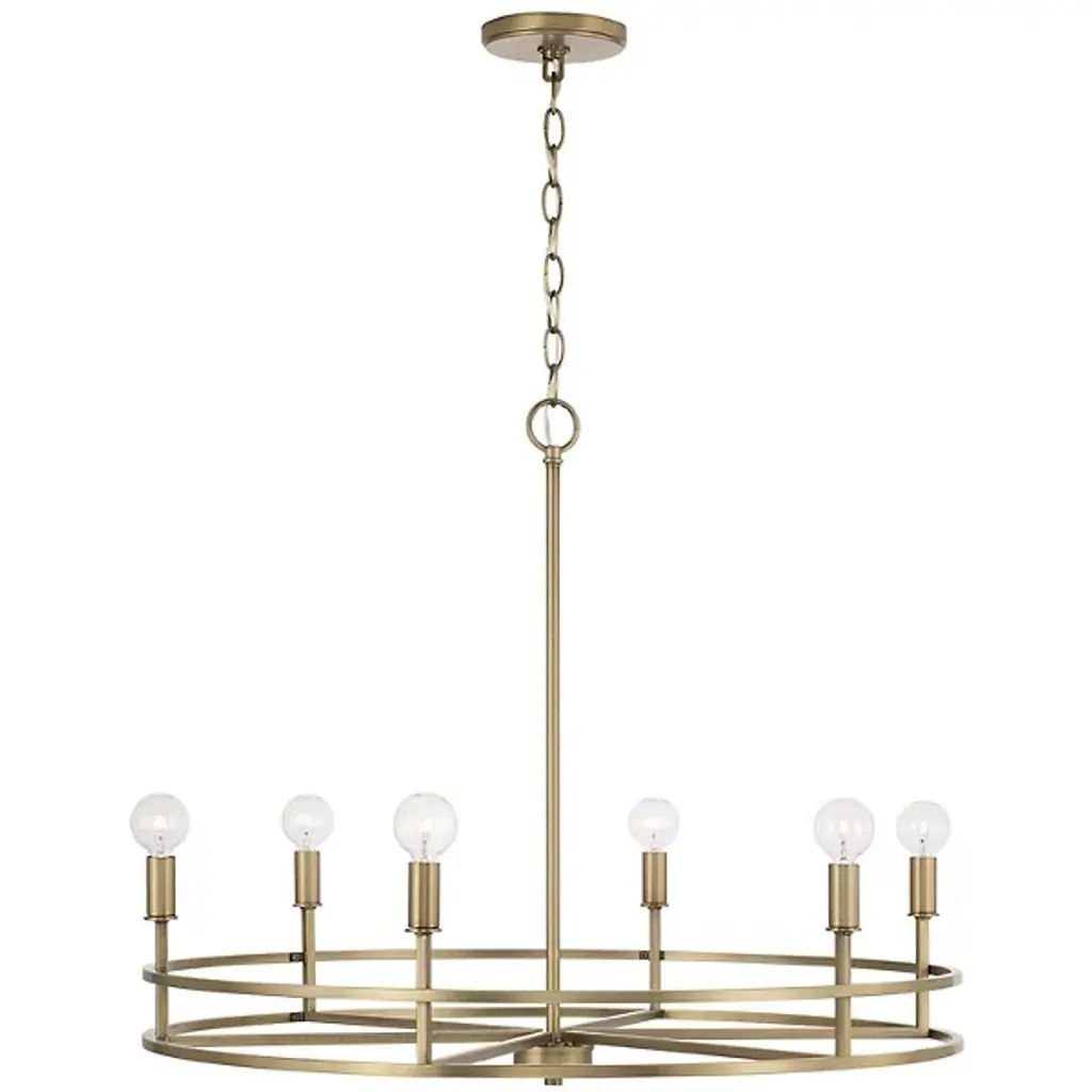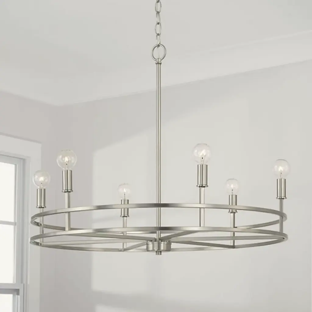Clean lines and a contemporary shape create the Fuller Chandelier by Capital Lighting. A collection of LED lamps neatly lines your chandelier’s ring-shaped metal framework, Illuminating your living space with ease. This multi-light fixture is secured by a canopy at your ceiling, allowing light to project in an overhead fashion.