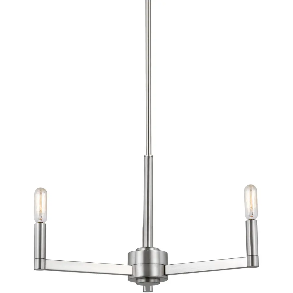 The Fullton three light single tier chandelier in brushed nickel silver is sleek, contemporary, and uber minimalistic. Visual interest is created using a mix of rectangular and round frames, a subtle design detail. Although this collection is contemporary, it can be mixed in with variety of collections with ease.