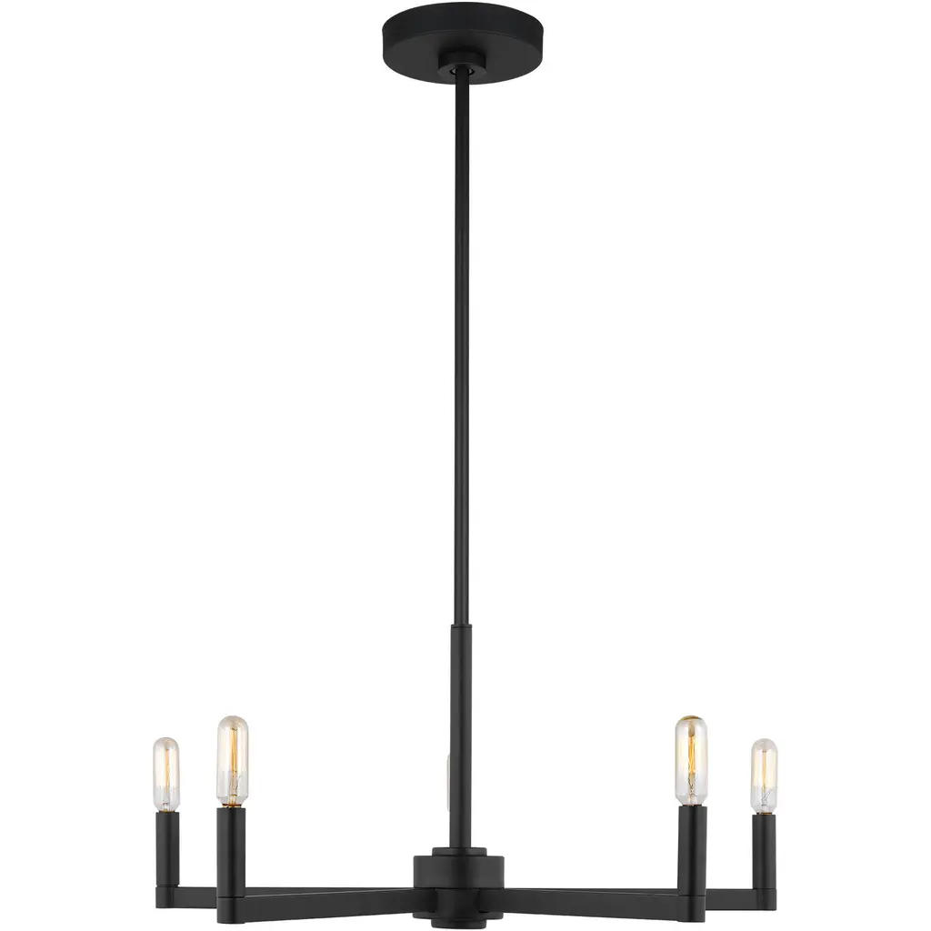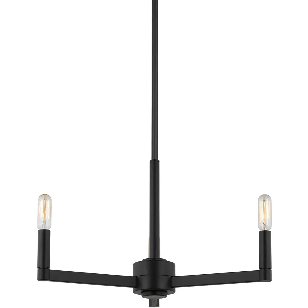 The Fullton three light single tier chandelier in Midnight Black is sleek, contemporary, and uber minimalistic. Visual interest is created using a mix of rectangular and round frames, a subtle design detail. Although this collection is contemporary, it can be mixed in with variety of collections with ease.