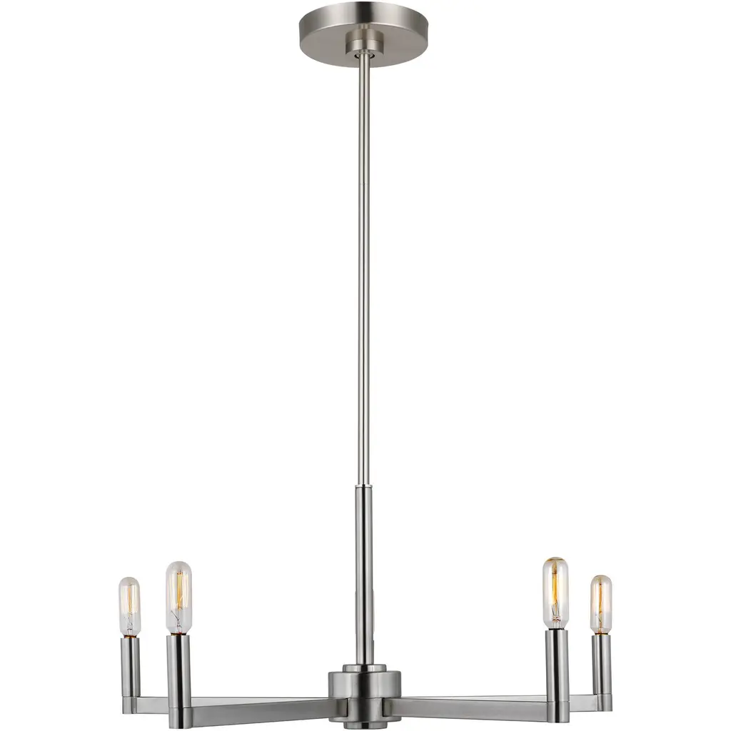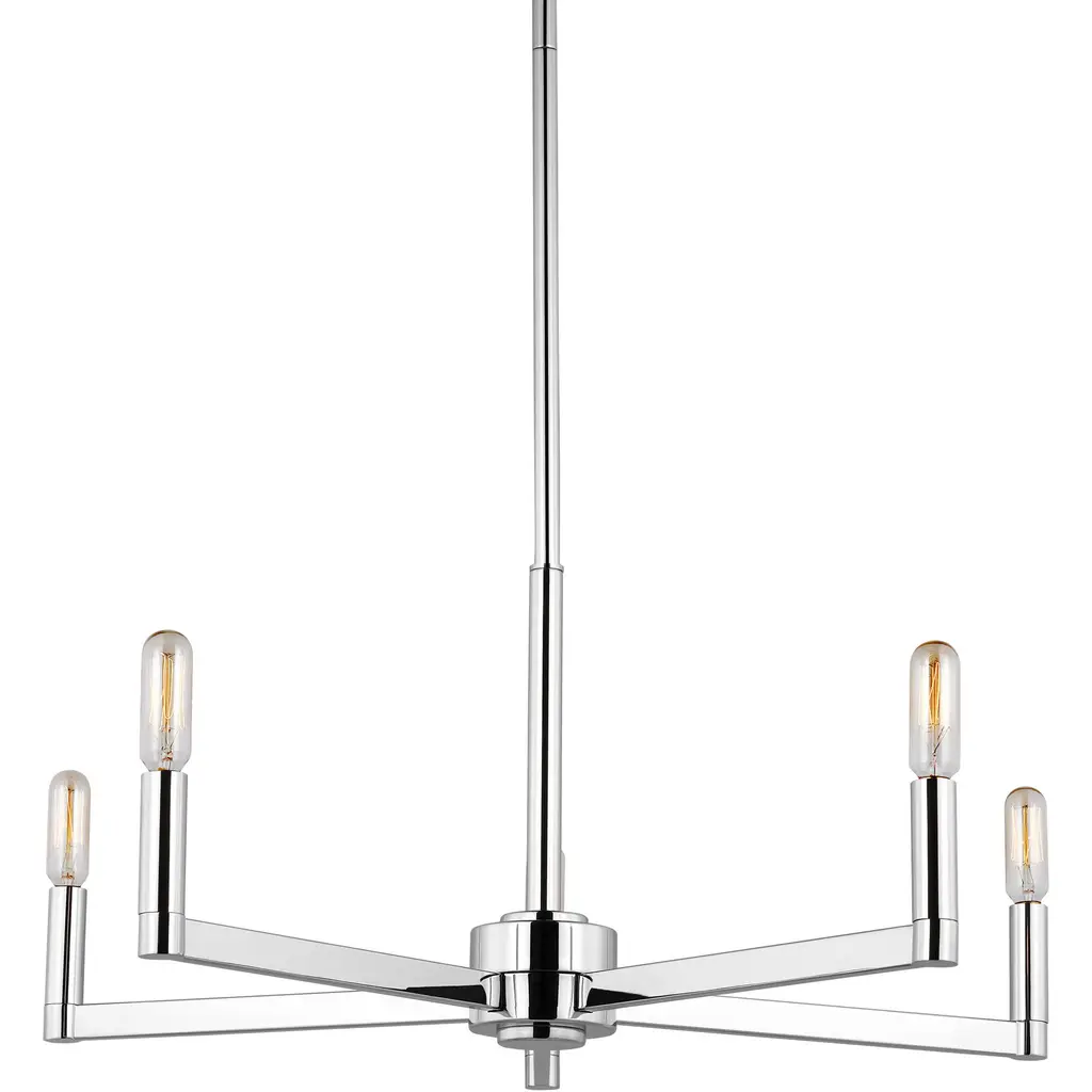 The Fullton five light single tier chandelier in Chrome is sleek, contemporary, and uber minimalistic. Visual interest is created using a mix of rectangular and round frames, a subtle design detail. Although this collection is contemporary, it can be mixed in with variety of collections with ease.