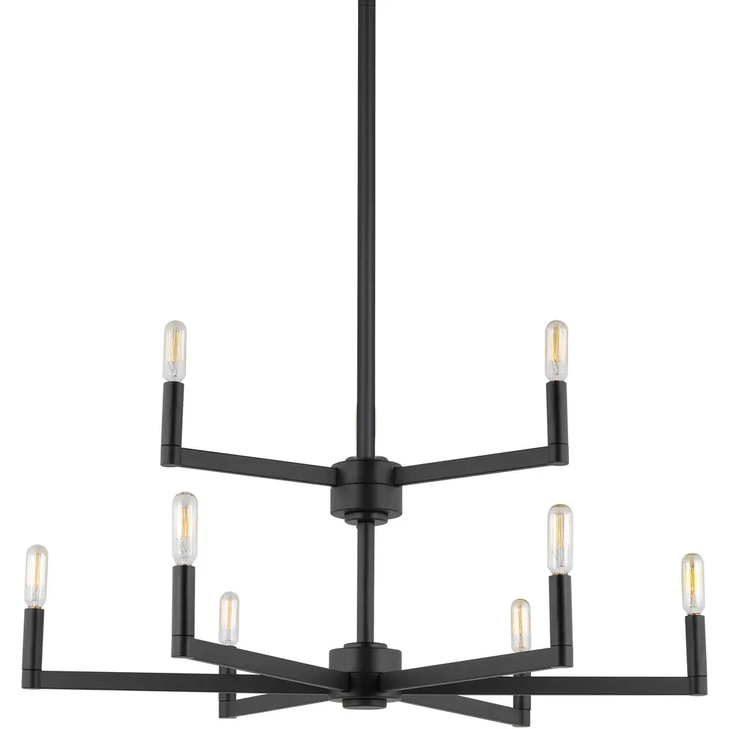 The Fullton nine light multi-tier chandelier in Midnight Black is sleek, contemporary, and uber minimalistic. Visual interest is created using a mix of rectangular and round frames, a subtle design detail. Although this collection is contemporary, it can be mixed in with variety of collections with ease.