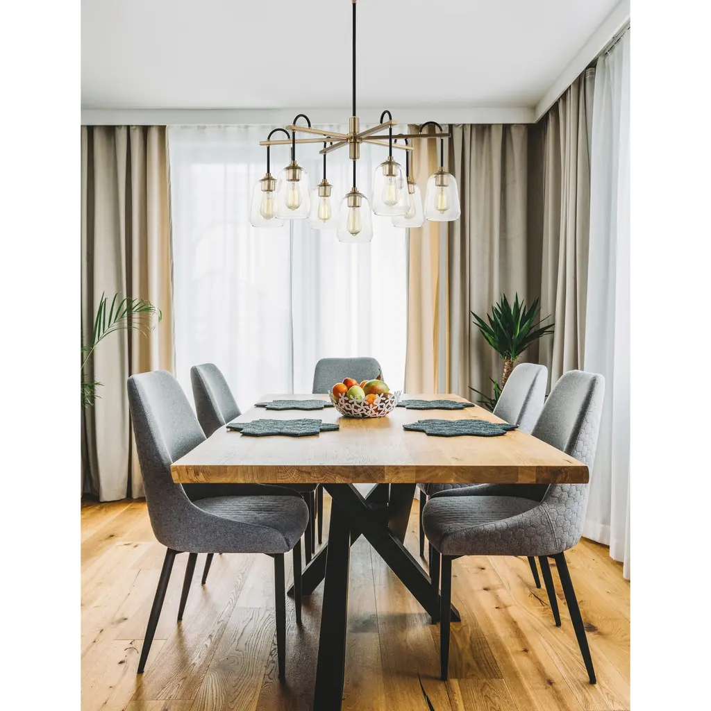 Arcwell 7-Light Chandelier - Clear Glass - Matte Black w/ Brass Accents Finish