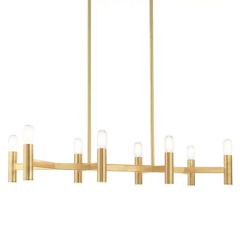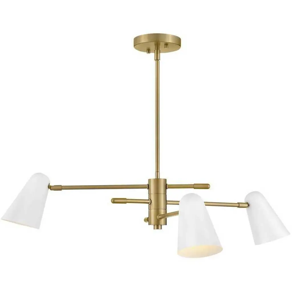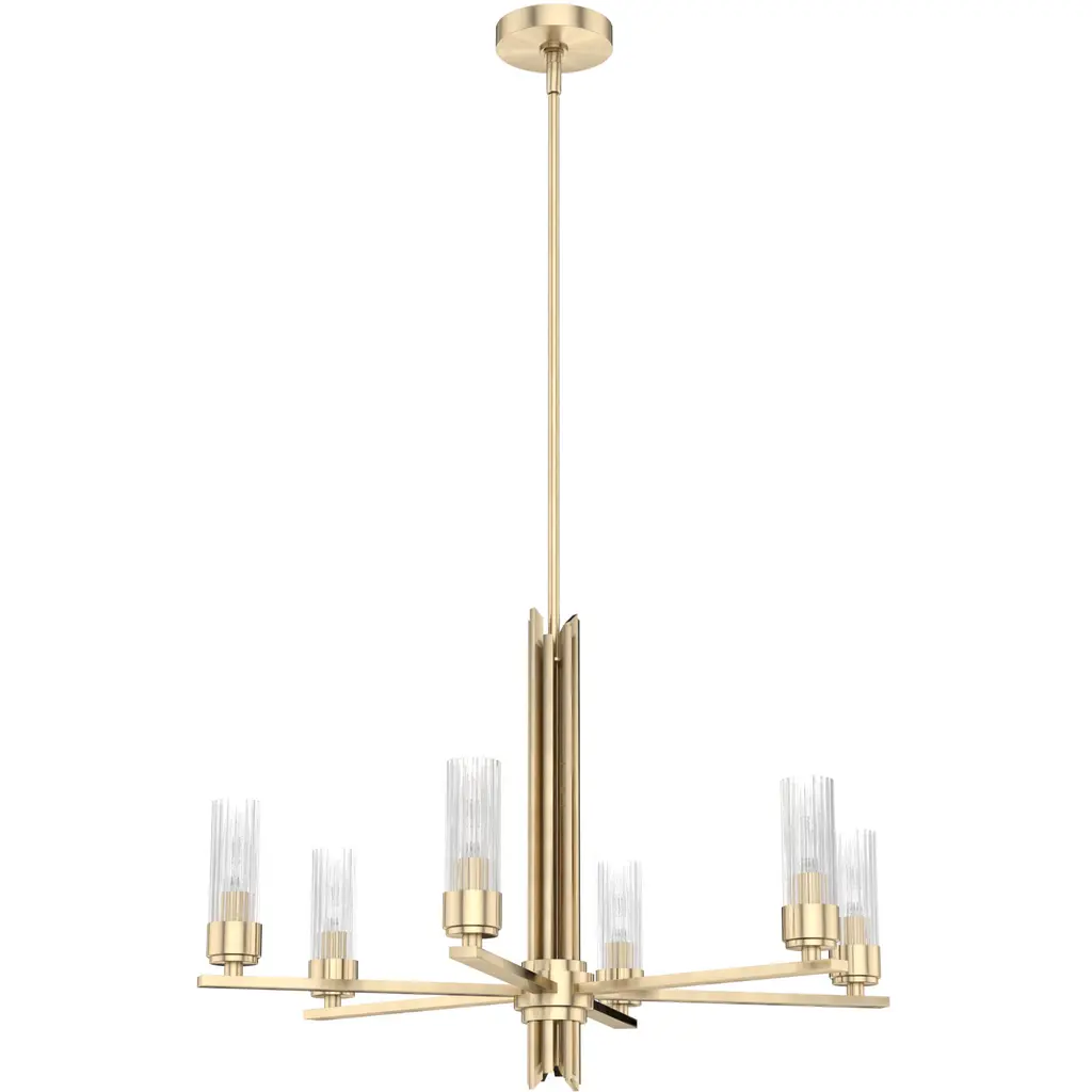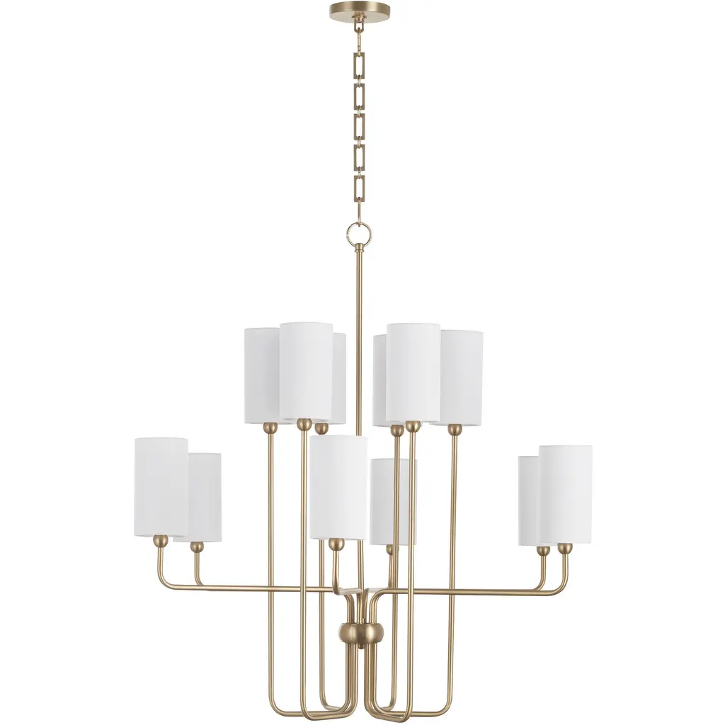The Gala Chandelier from Kichler presents a memorable sculptural design that commands immediate attention. Retained by a circular canopy, it transmits a slender stem to dual crossbar forms below, each end extending lamping within a cylindrical shade. The top and bottom clusters rotate independently of each other, allowing for an incredible variety of configurations. The top cluster faces up for indirect uplight that reflects from the ceiling, while the bottom cluster transmits a constellation of focused direct downlight.