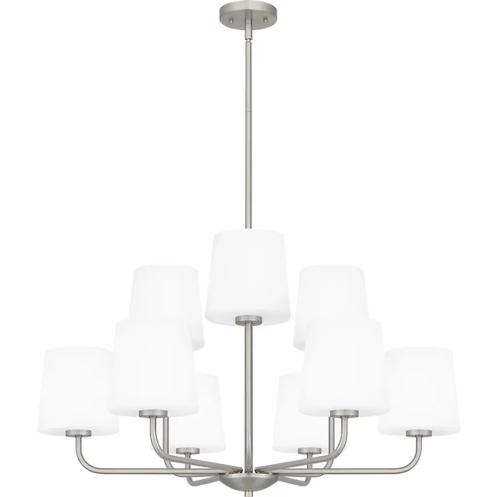 The Gallagher 2-Tier Chandelier from Quoizel elegantly fuses transitional styling with classic elegance, making it a stunning addition to any space. This chandelier is crafted to both impress and complement your existing decor, acting as a captivating focal point that enriches the ambiance of any room. Ideal for revitalizing your dining area, living room, or entryway, the Gallagher 2-Tier Chandelier introduces a sophisticated touch and merges seamlessly with both modern and traditional interiors.
