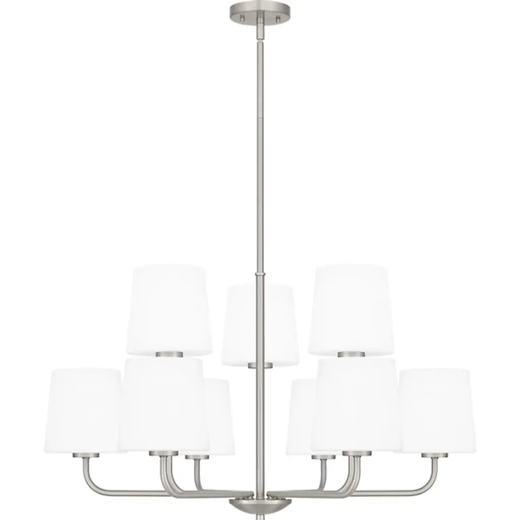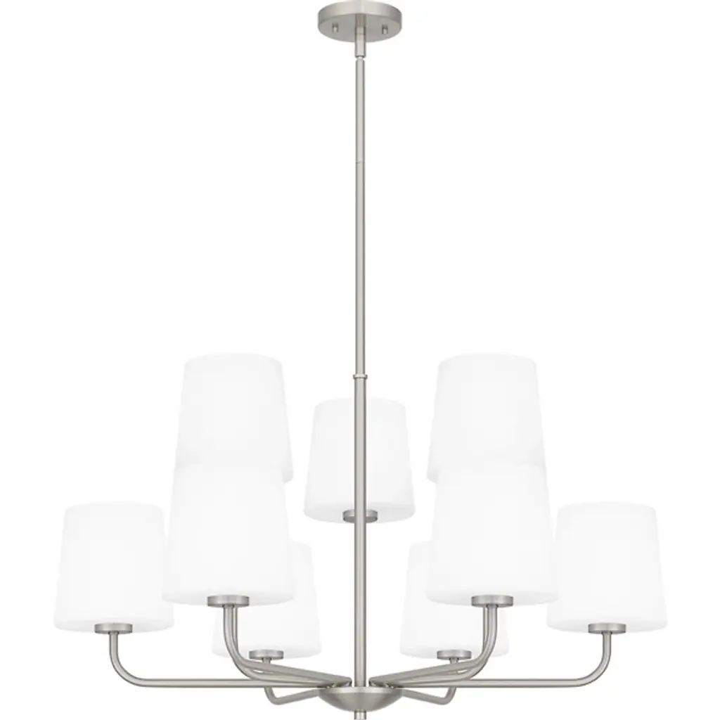 The Gallagher 2-Tier Chandelier from Quoizel elegantly fuses transitional styling with classic elegance, making it a stunning addition to any space. This chandelier is crafted to both impress and complement your existing decor, acting as a captivating focal point that enriches the ambiance of any room. Ideal for revitalizing your dining area, living room, or entryway, the Gallagher 2-Tier Chandelier introduces a sophisticated touch and merges seamlessly with both modern and traditional interiors.