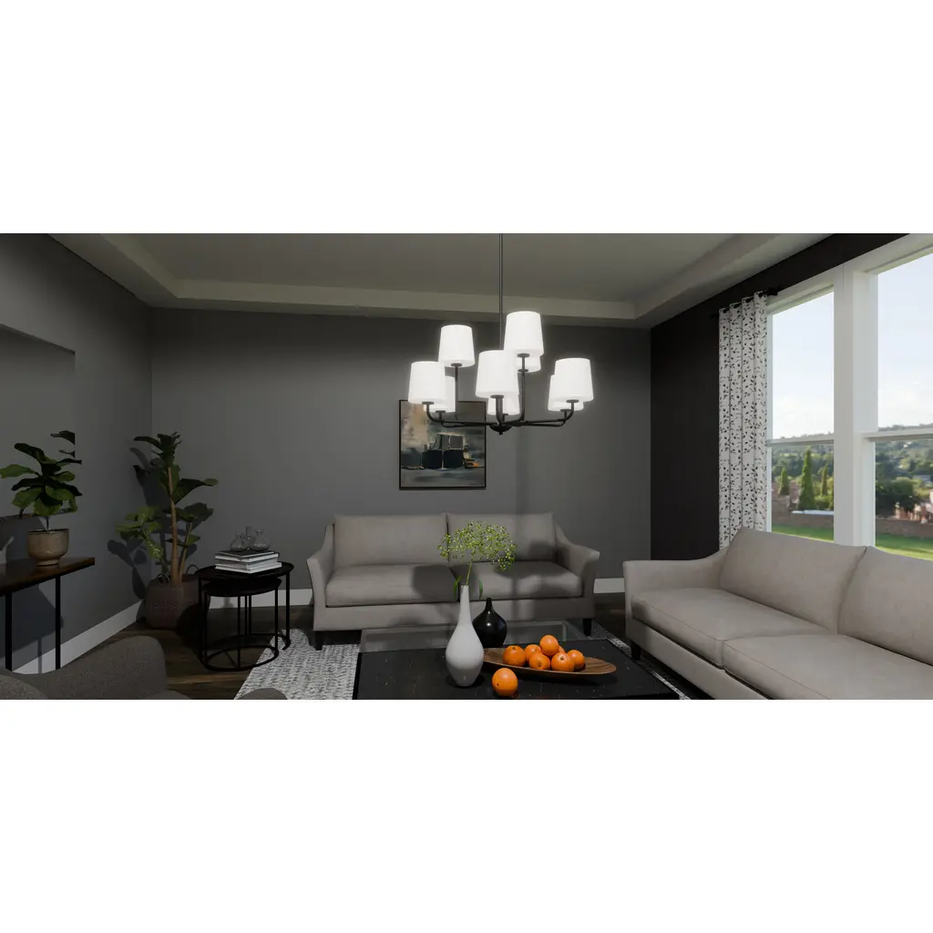 Available in a variety of sizes, Gallagher chandeliers offer the perfect complement to any space. Choose from a classic brushed nickel finish with opal etched glass shades- or go the more modern route with a matte black finish and white fabric shades. Whichever you choose, Gallagher is sure to impress with its transitional styling.