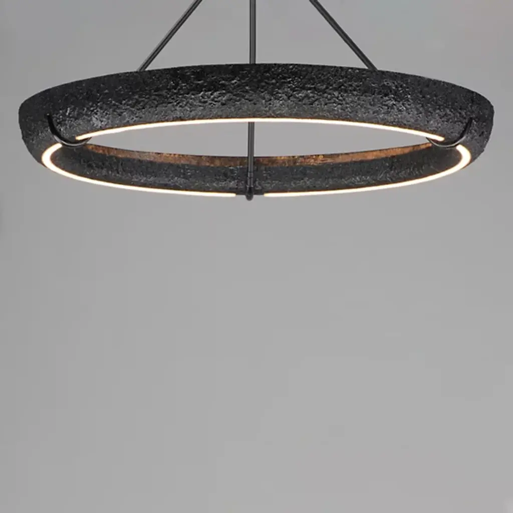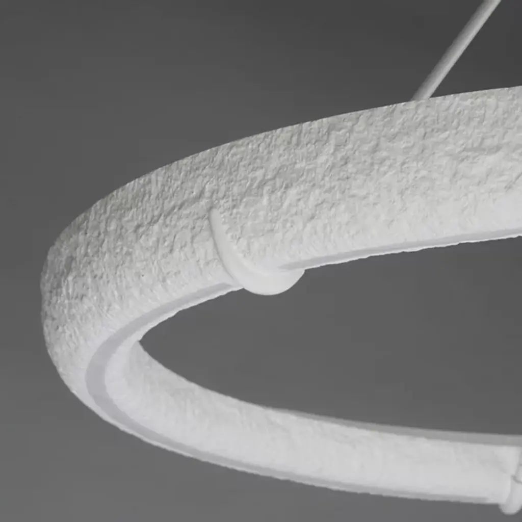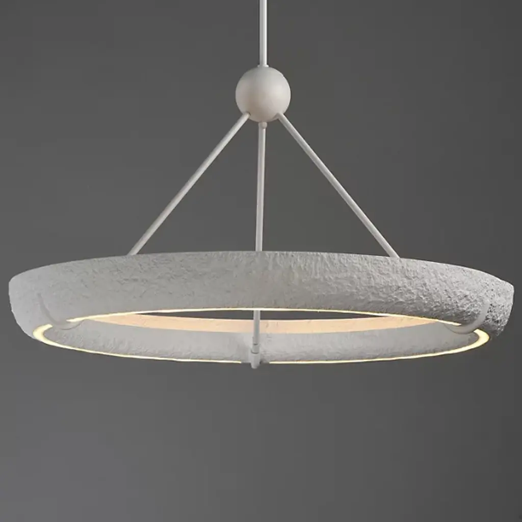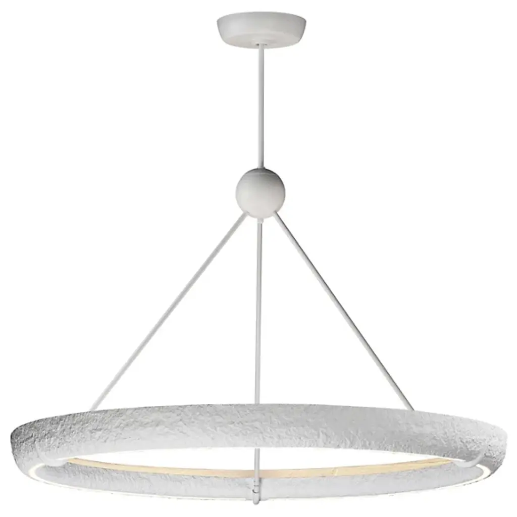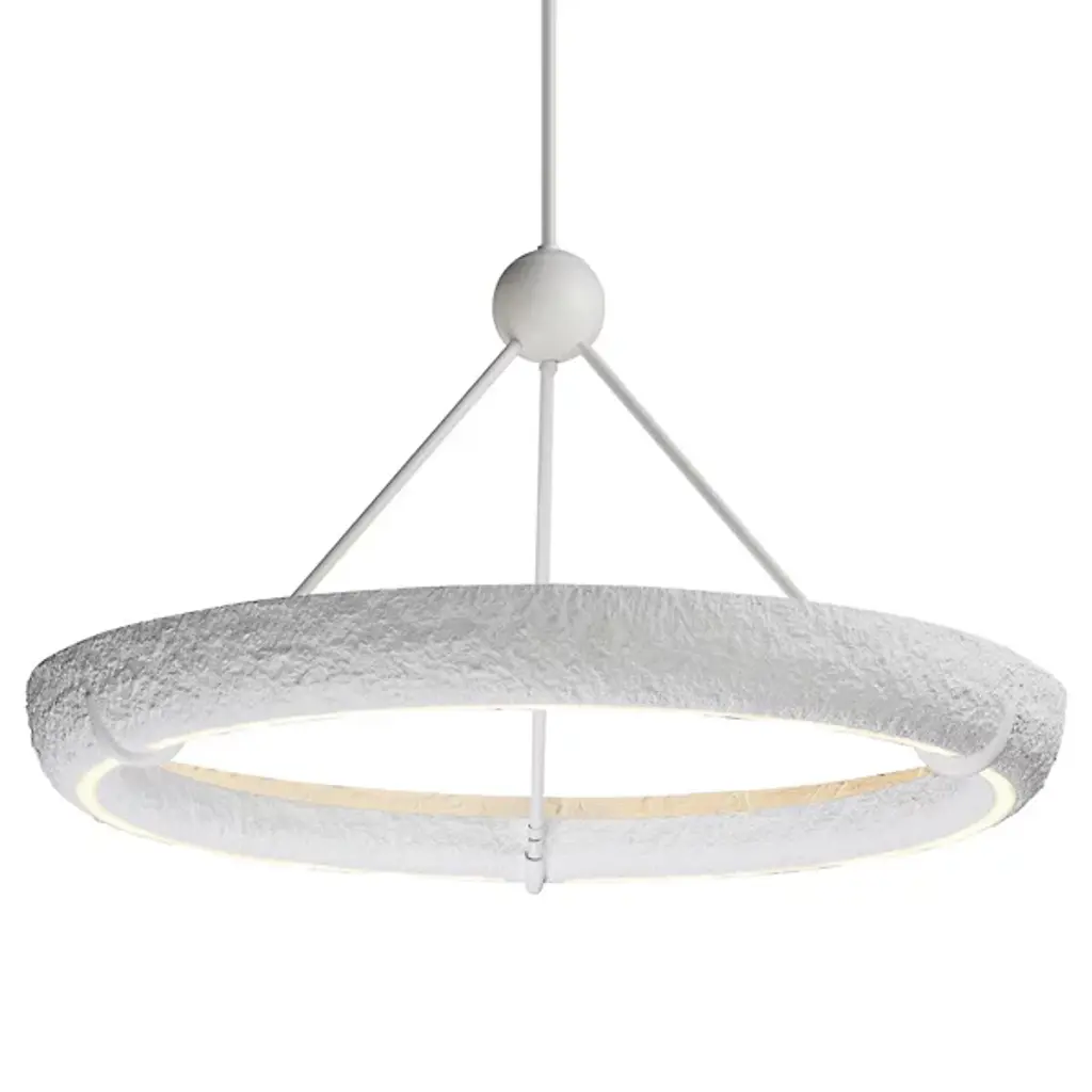 The Geist LED Chandelier from ET2 Lighting draws on historical plaster work while bringing it into the present day. The gypsum ring contains hidden lighting that shines both upward and downward, creating multiple layers of illumination from a single source. Unlike traditional chandeliers with multiple arms, this piece takes a minimalist approach with its circular form. This suspension works wonderfully above dining tables or in living spaces where you want lighting that feels artistic without being showy.