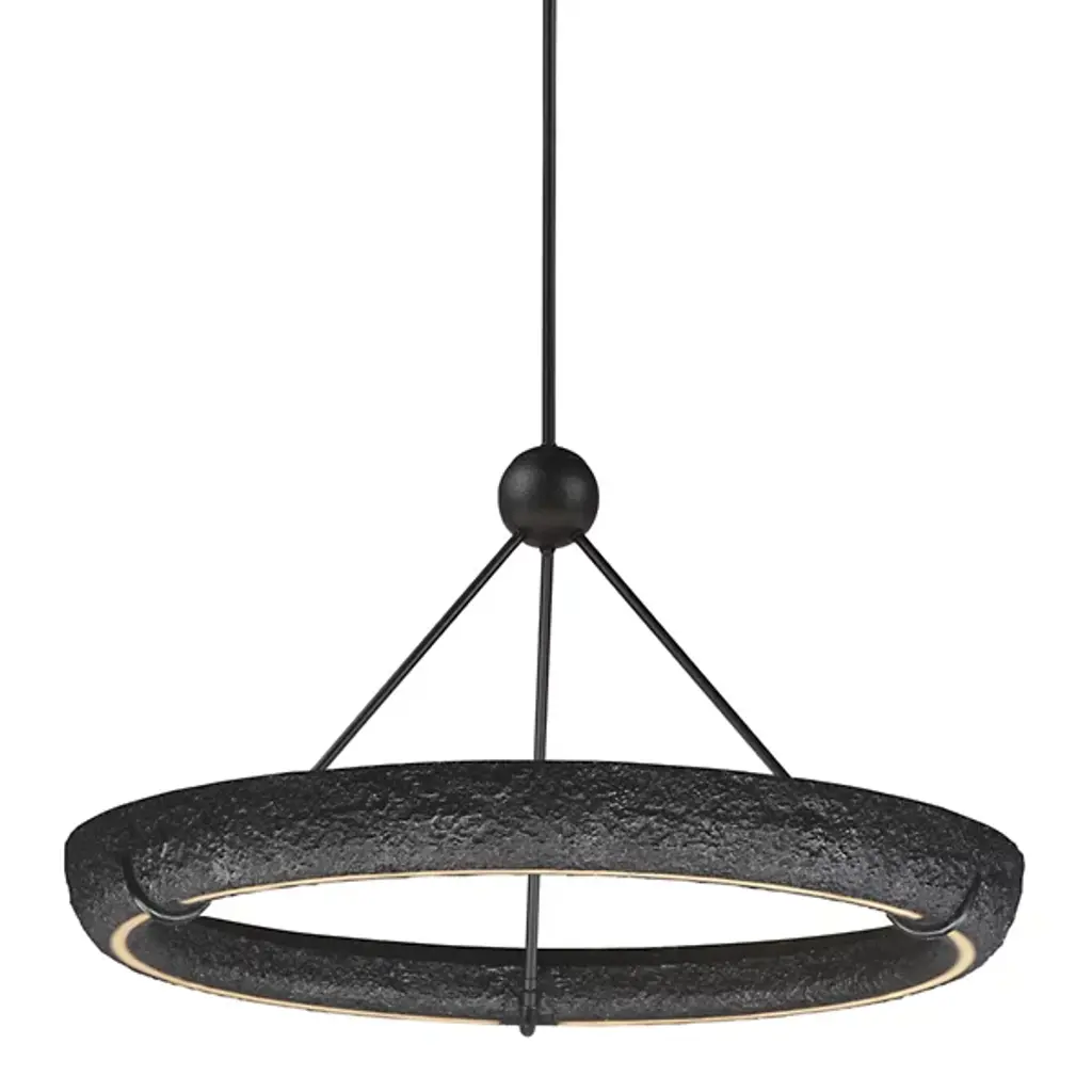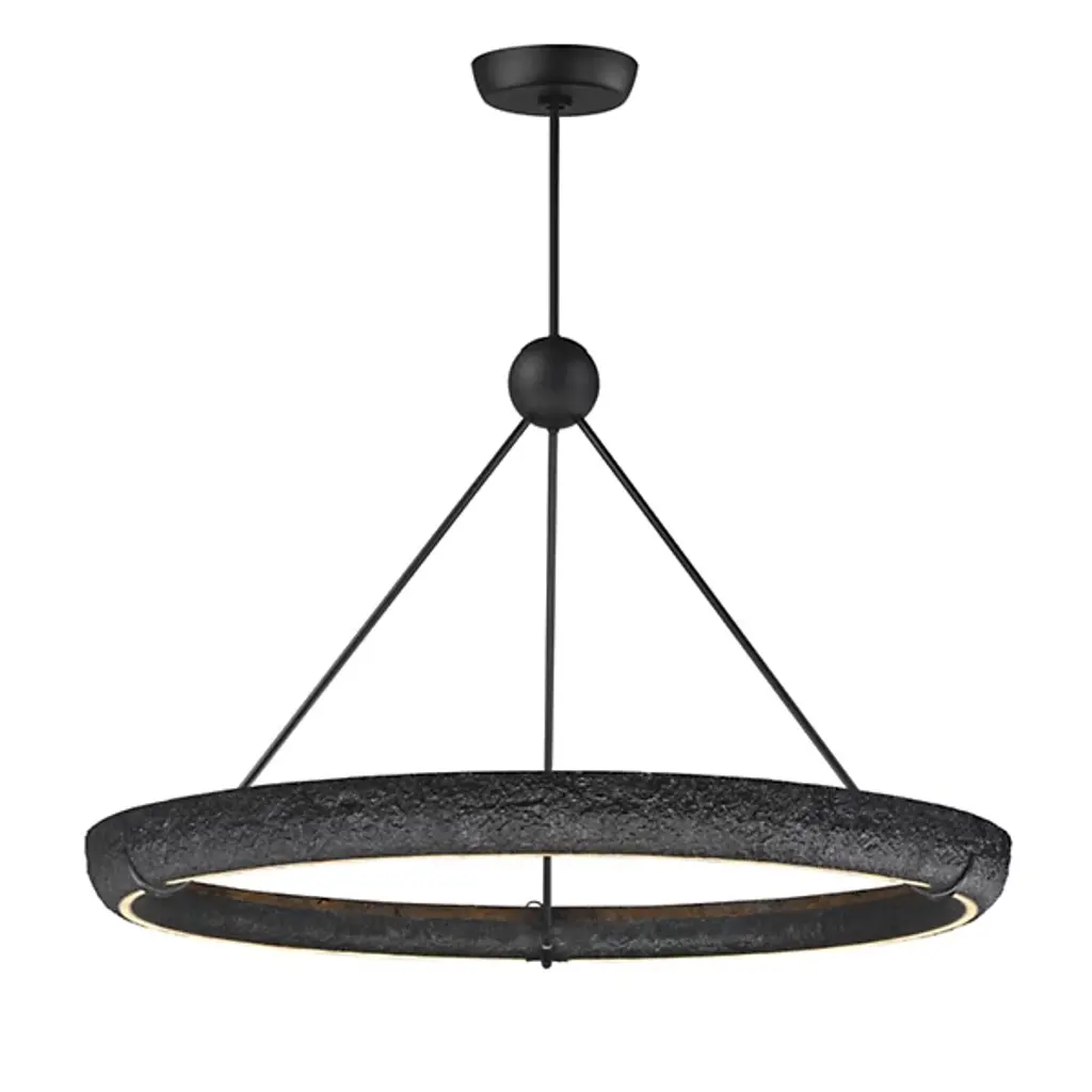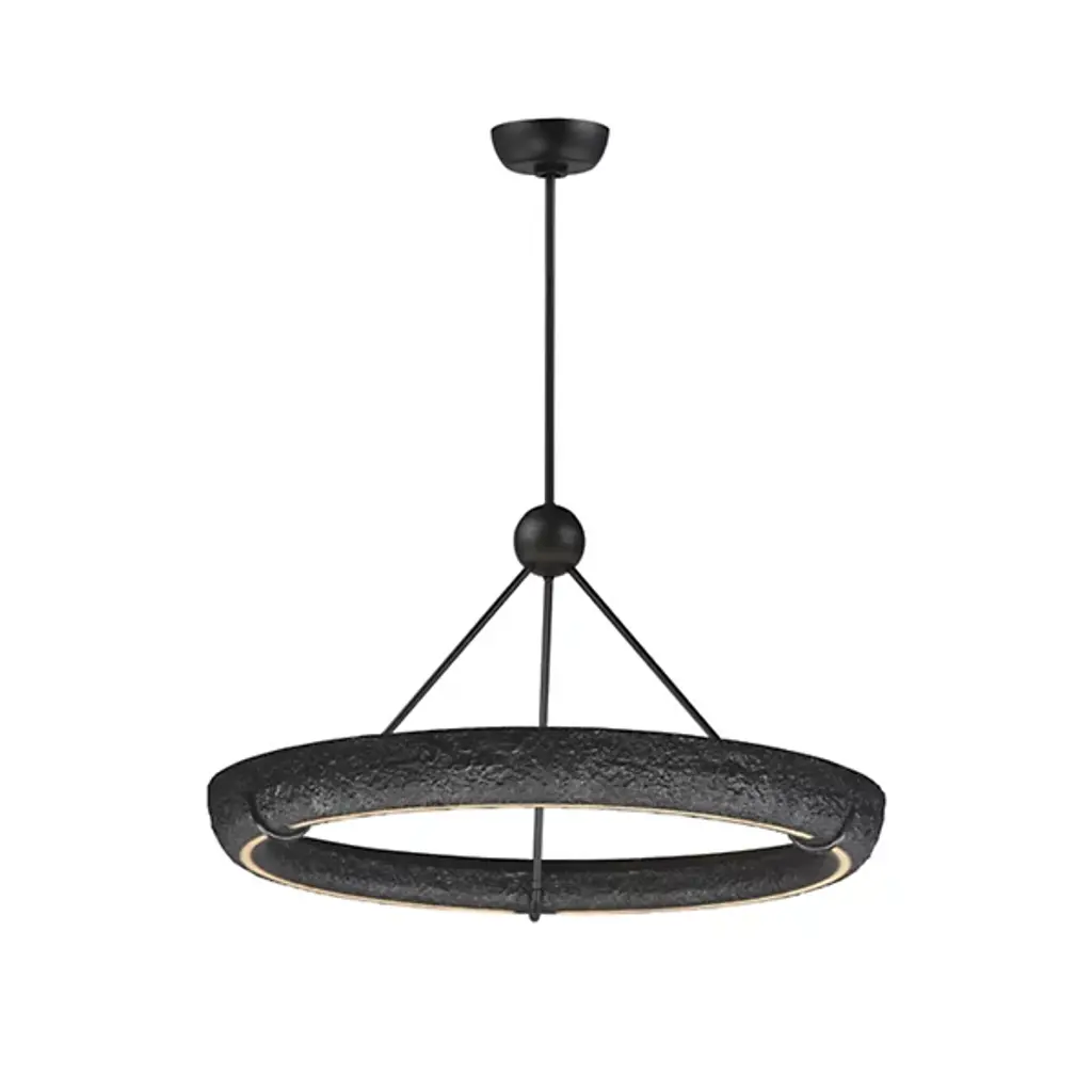 The Geist LED Chandelier from ET2 Lighting draws on historical plaster work while bringing it into the present day. The gypsum ring contains hidden lighting that shines both upward and downward, creating multiple layers of illumination from a single source. Unlike traditional chandeliers with multiple arms, this piece takes a minimalist approach with its circular form. This suspension works wonderfully above dining tables or in living spaces where you want lighting that feels artistic without being showy.