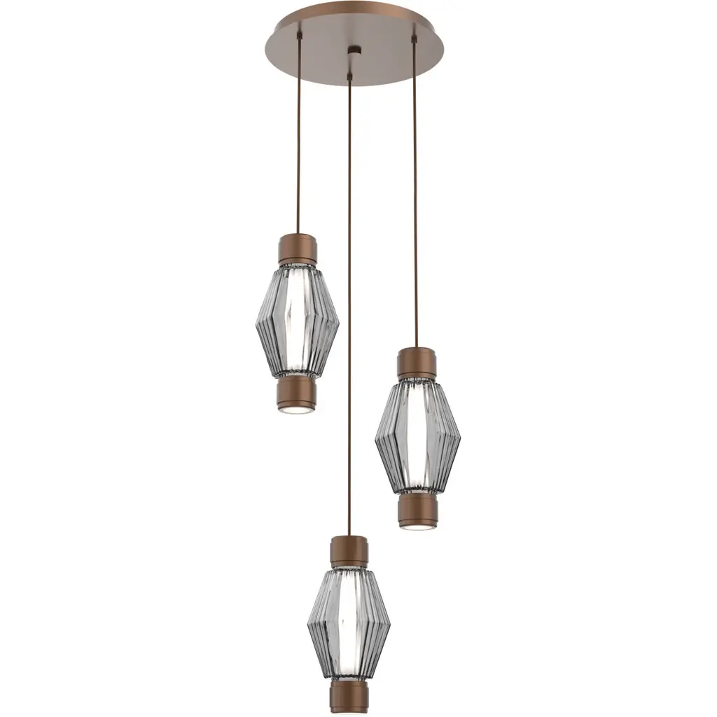 Gem Round Multi-Port-03-Burnished Bronze-Blown Glass Gem - Smoke-Bronze Cloth Braided Cord-LED
