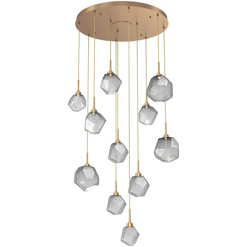 Gem Round Multi-Port-11-Classic Silver-Blown Glass Gem - Smoke-Silver Cloth Braided Cord-LED