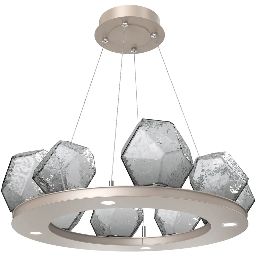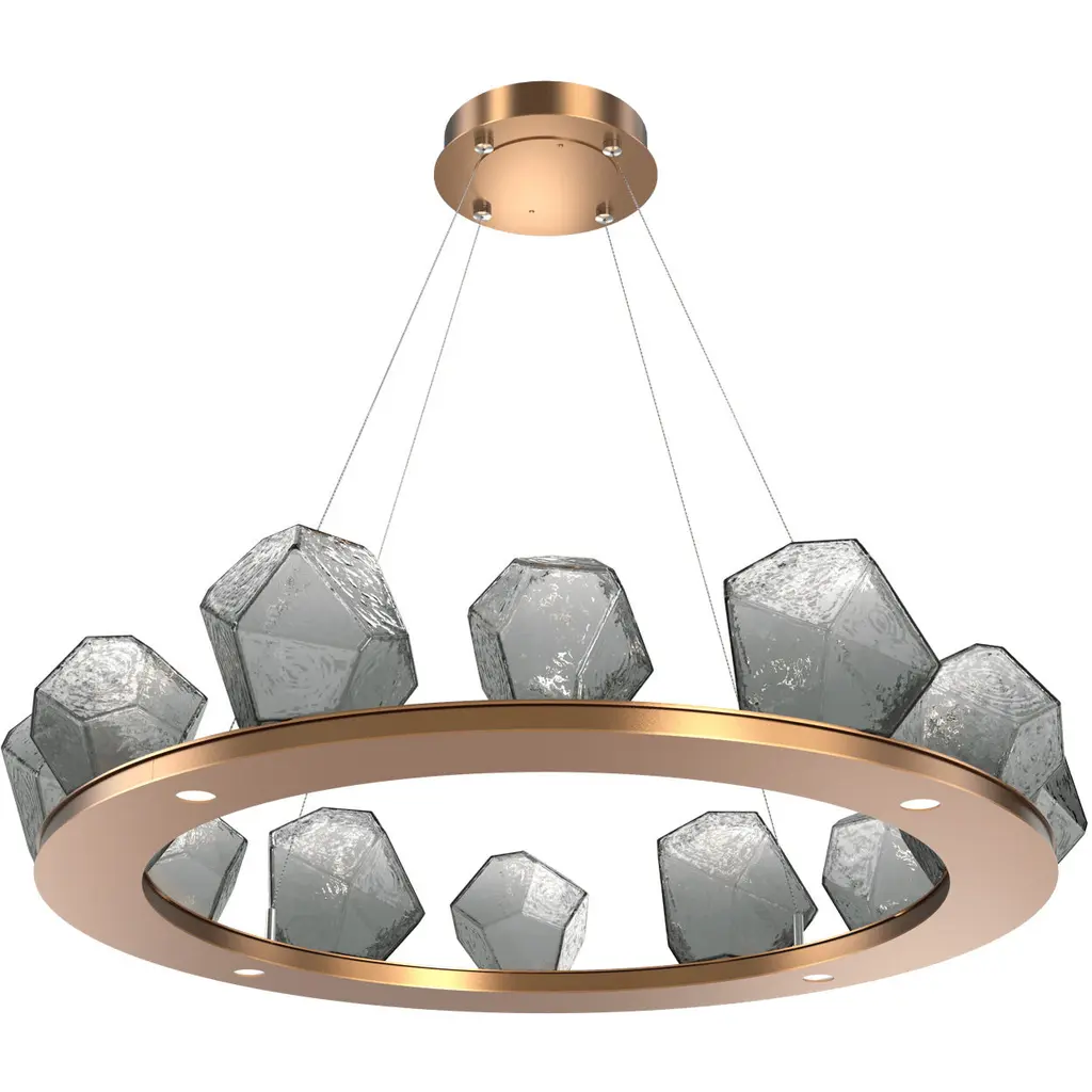 Gem Ring Chandelier-0C-Flat Bronze-Blown Glass Gem - Smoke-Stainless Steel Cable-LED