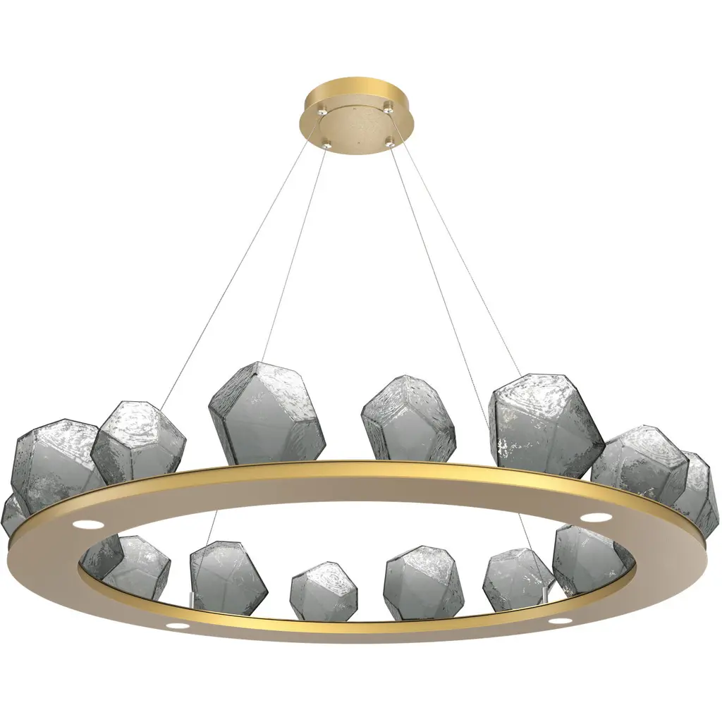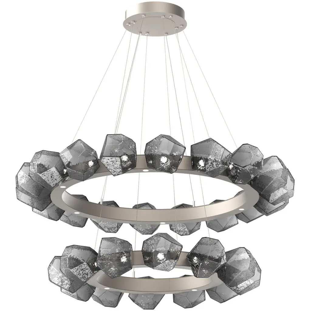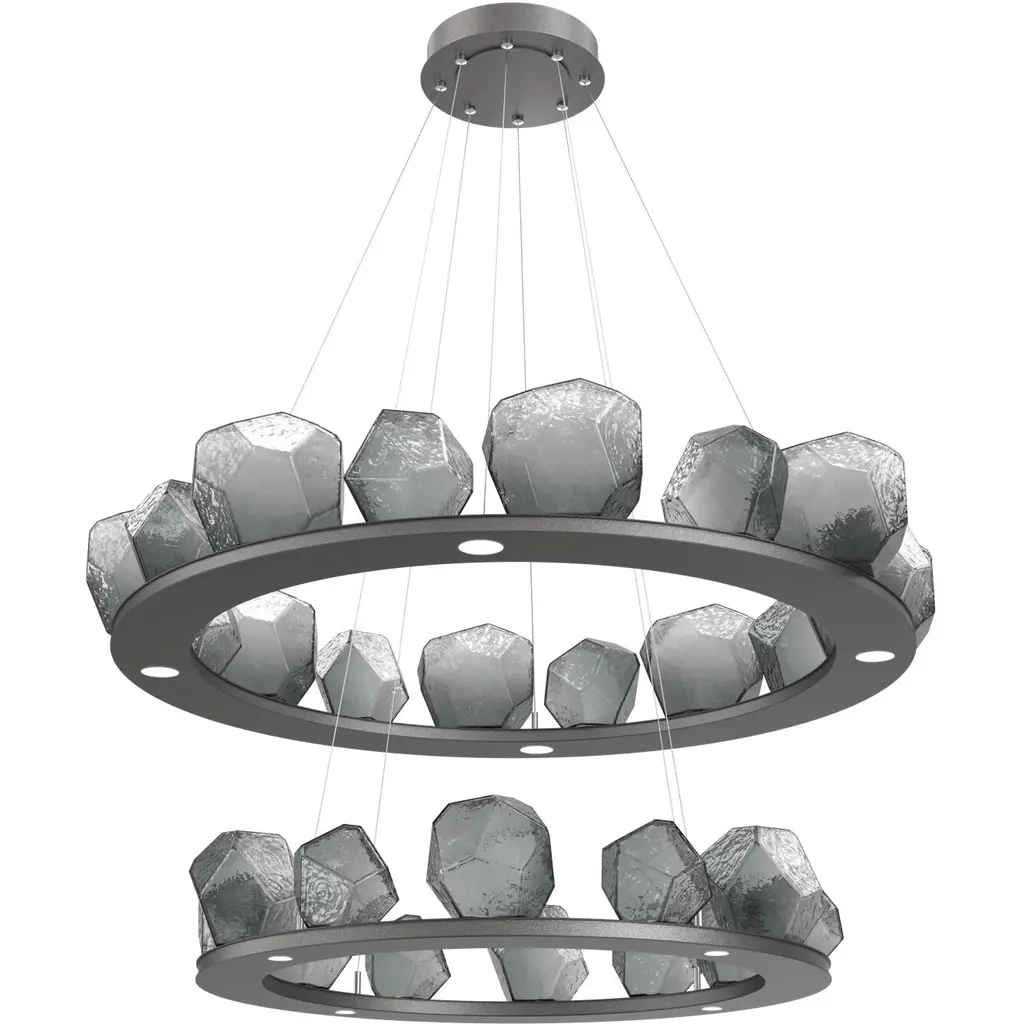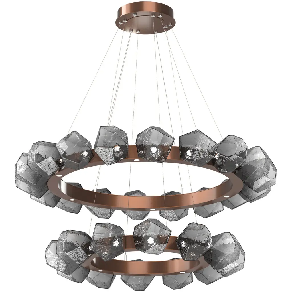 Two Tier Gem Ring Chandelier-2B-Flat Bronze-Blown Glass Gem - Smoke-Stainless Steel Cable-LED