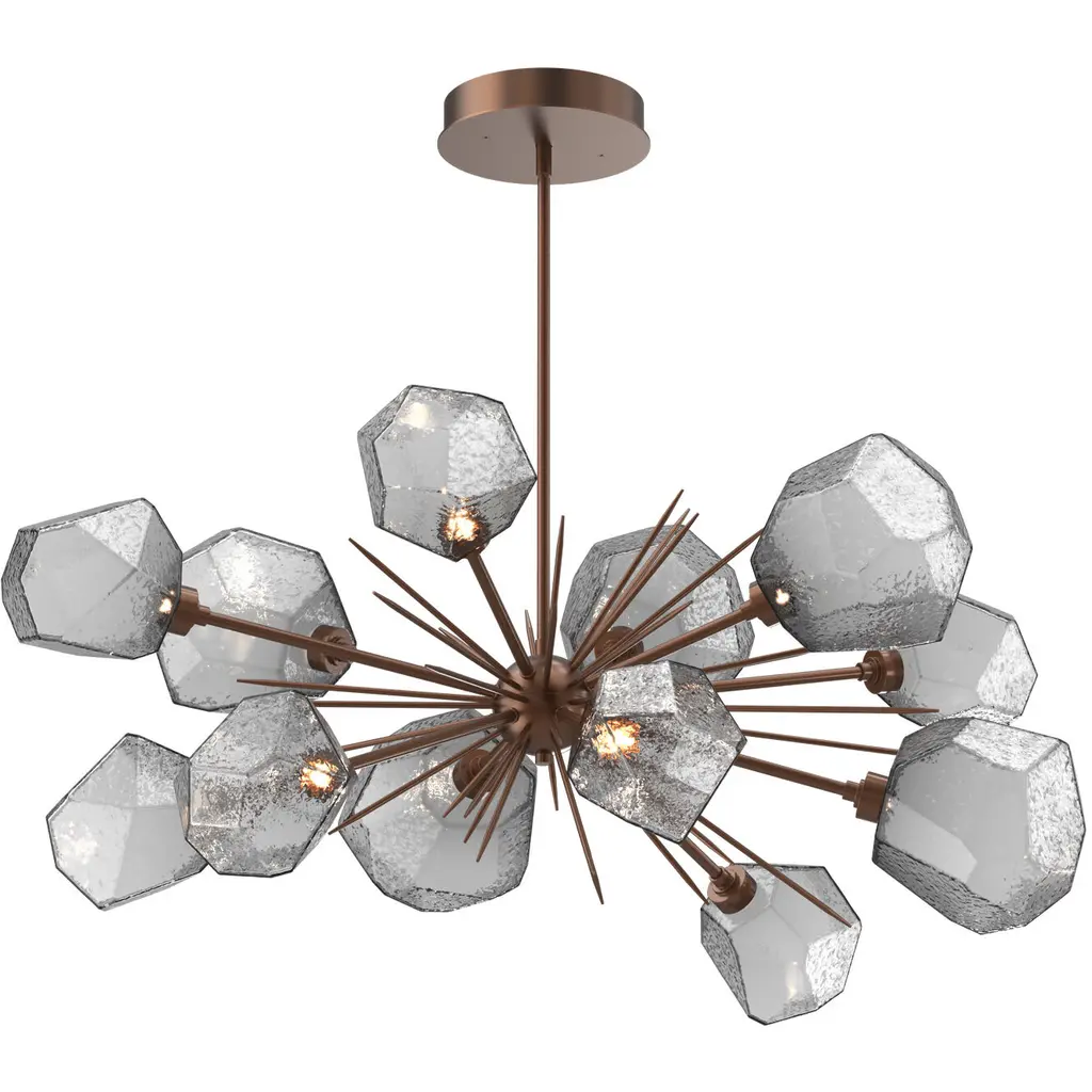 Gem Round Belvedere Chandelier-55-Burnished Bronze-Blown Glass Gem - Smoke-Threaded Rod Suspension-LED