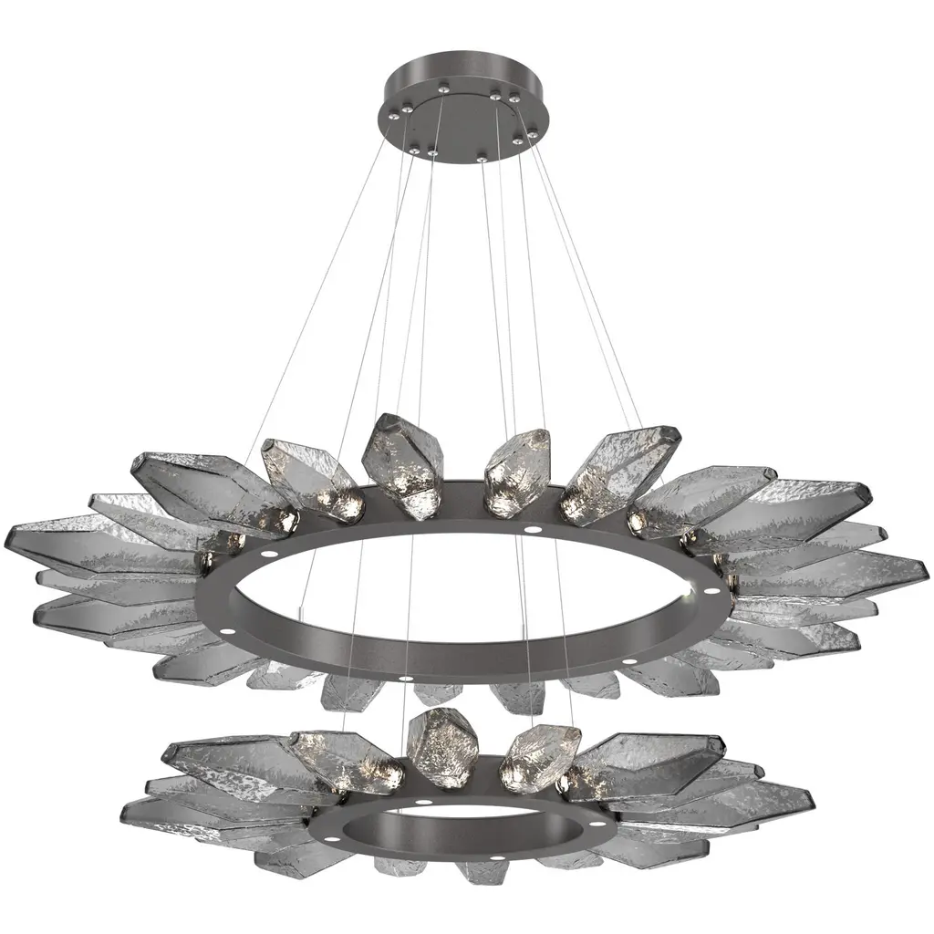 Gem Radial Ring - 48" -Graphite-Blown Glass Gem - Smoke-Stainless Steel Cable-LED