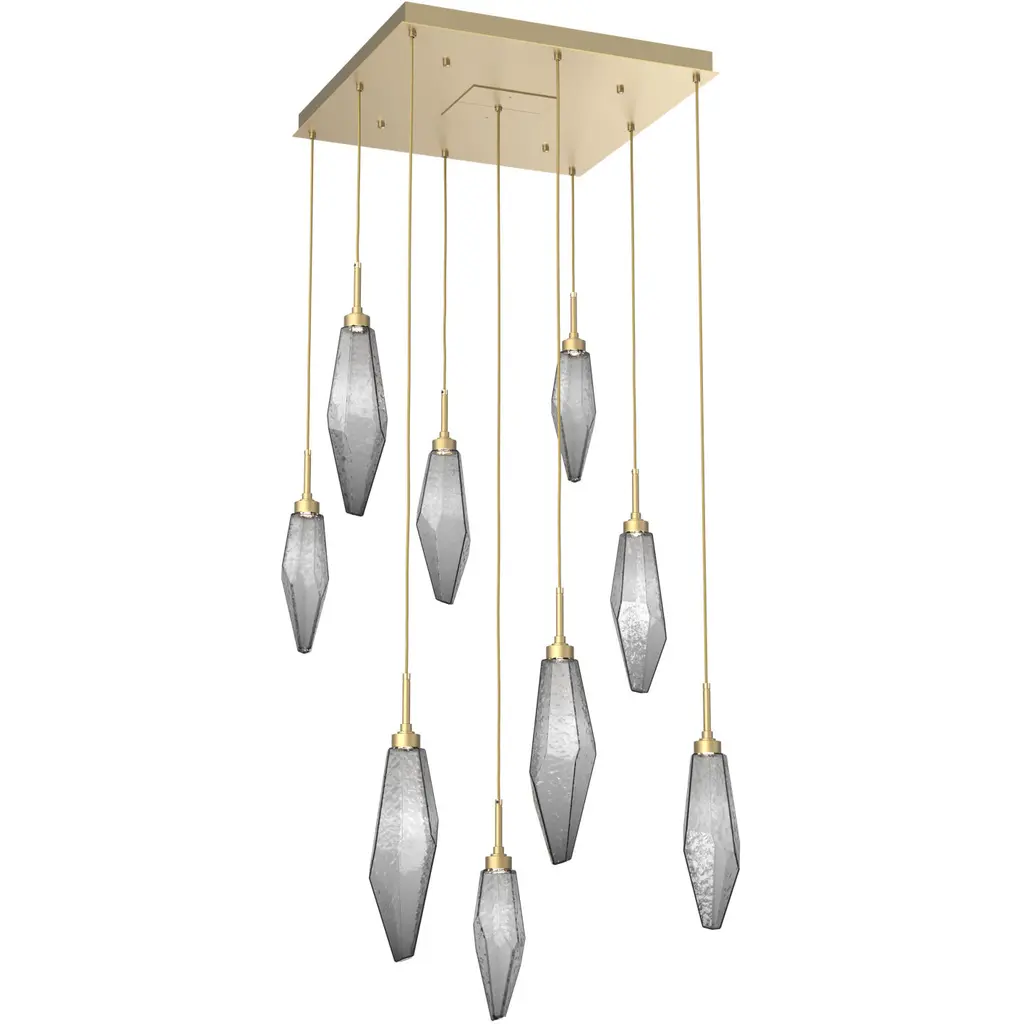 Gem Square Multi-Port-12-Novel Brass-Blown Glass Gem - Smoke-Brass Cloth Braided Cord-LED