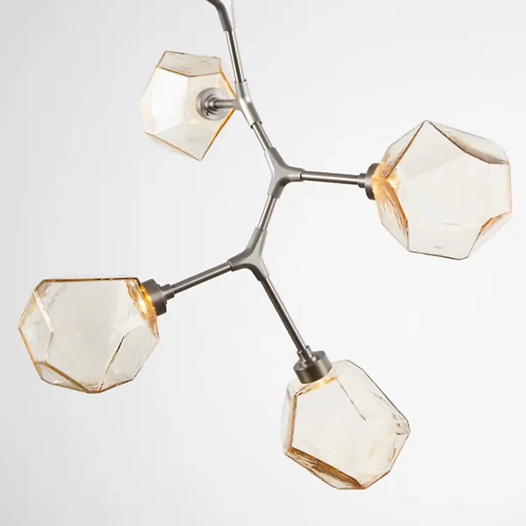 Inspired by the idea of using lighting as jewelry for the home, the Gem Modern Vine LED Chandelier by Hammerton Studio is an elegant and enchanting piece. Featuring energy-efficient, sparkling, gem-like glass shades that lend a lovely layer of light to surroundings, each piece of hand-blown glass is made by a skilled craftsman, nodding to both vintage and modern styles with a faceted look. Balancing form and function, a hand-finished metal stem supports the beautiful elements of this piece, much like a flowering vine. Captivating and lovely, this chandelier brings a bright touch to a variety of spaces.