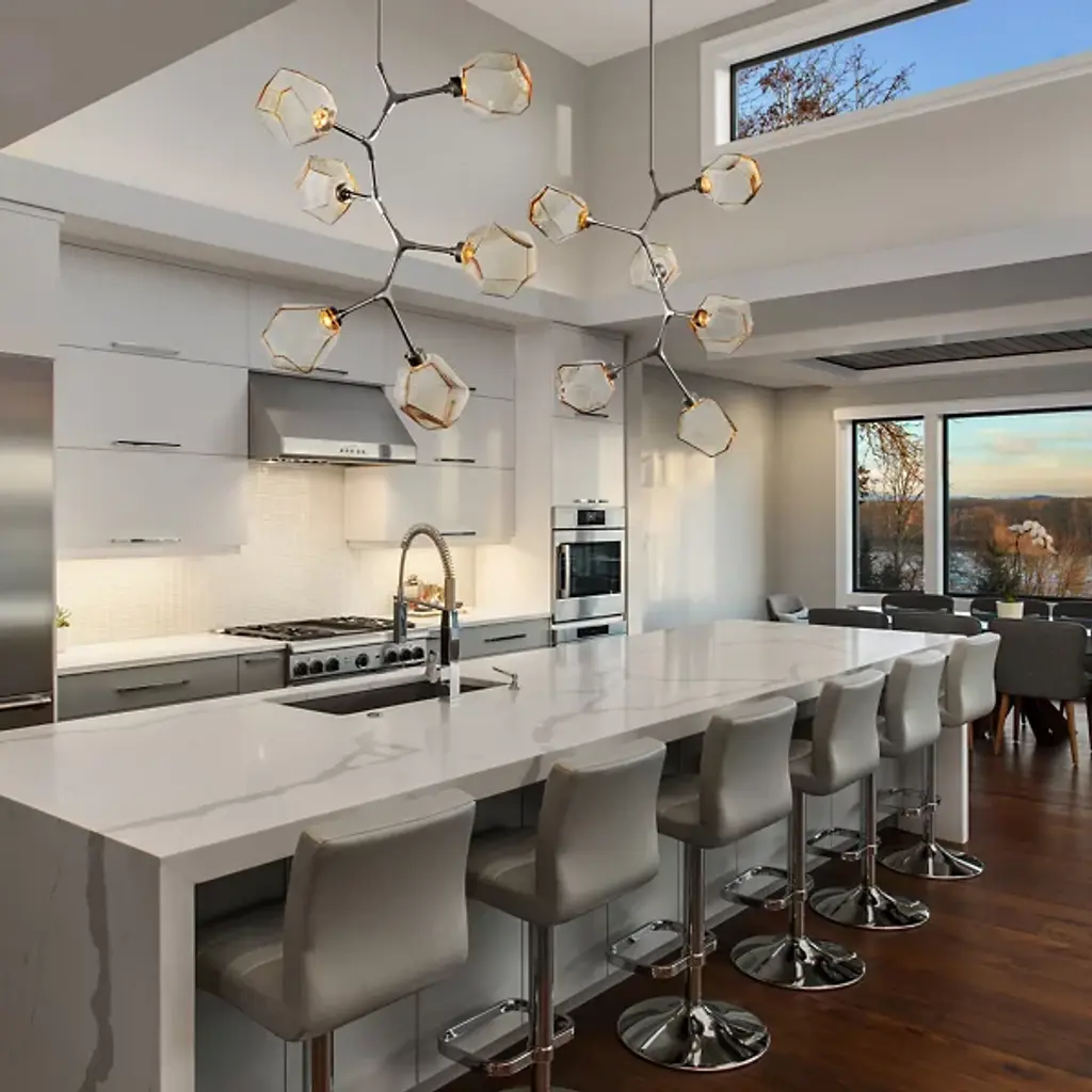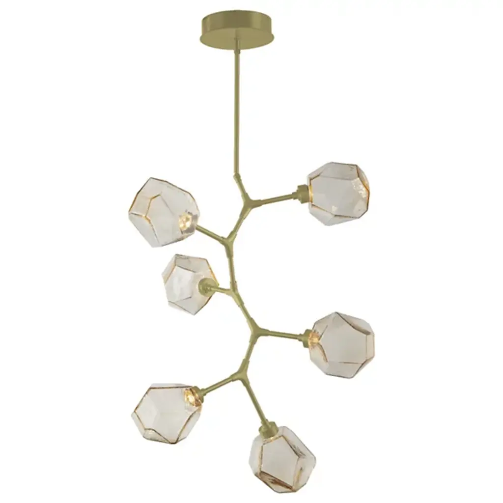 Inspired by the idea of using lighting as jewelry for the home, the Gem Modern Vine LED Chandelier by Hammerton Studio is an elegant and enchanting piece. Featuring energy-efficient, sparkling, gem-like glass shades that lend a lovely layer of light to surroundings, each piece of hand-blown glass is made by a skilled craftsman, nodding to both vintage and modern styles with a faceted look. Balancing form and function, a hand-finished metal stem supports the beautiful elements of this piece, much like a flowering vine. Captivating and lovely, this chandelier brings a bright touch to a variety of spaces.