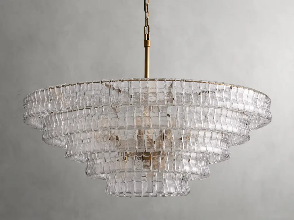 Inspired by the timeless beauty of Italian glass artistry, our Ghiaccio Collection pairs curved, textured glass panels in a range of luminous tones with gracefully layered forms. Finished with your choice of brass or bronze, each piece casts a warm, dimensional glow that fills any room with soft illumination and sculptural elegance.