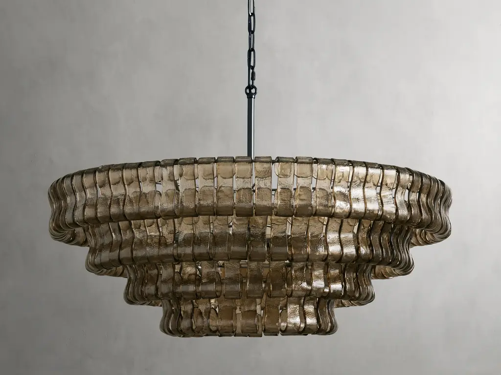 Inspired by the timeless beauty of Italian glass artistry, our Ghiaccio Collection pairs curved, textured glass panels in a range of luminous tones with gracefully layered forms. Finished with your choice of brass or bronze, each piece casts a warm, dimensional glow that fills any room with soft illumination and sculptural elegance.