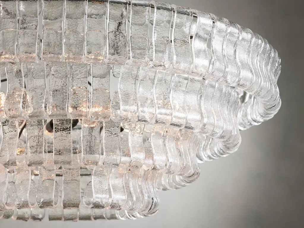 Inspired by the timeless beauty of Italian glass artistry, our Ghiaccio Collection pairs curved, textured glass panels in a range of luminous tones with gracefully layered forms. Finished with your choice of brass or bronze, each piece casts a warm, dimensional glow that fills any room with soft illumination and sculptural elegance.