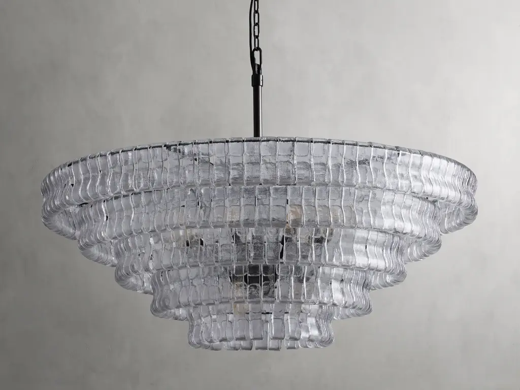 Inspired by the timeless beauty of Italian glass artistry, our Ghiaccio Collection pairs curved, textured glass panels in a range of luminous tones with gracefully layered forms. Finished with your choice of brass or bronze, each piece casts a warm, dimensional glow that fills any room with soft illumination and sculptural elegance.