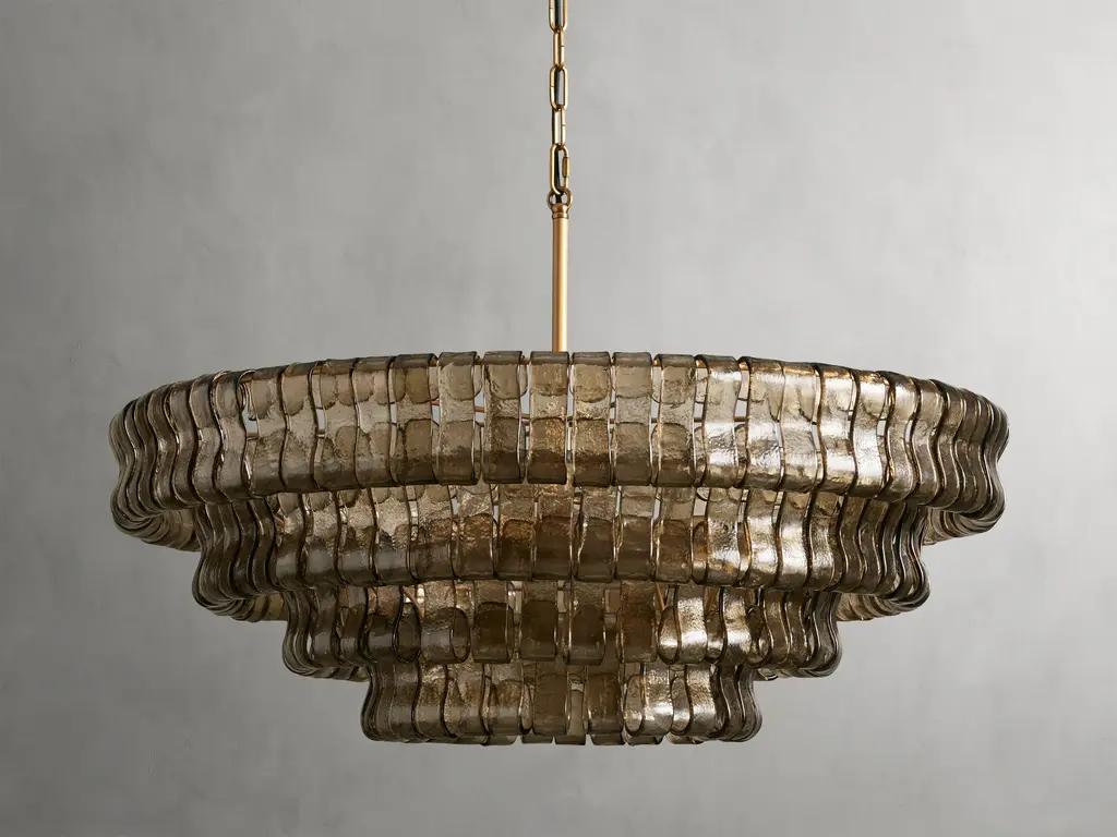 Inspired by the timeless beauty of Italian glass artistry, our Ghiaccio Collection pairs curved, textured glass panels in a range of luminous tones with gracefully layered forms. Finished with your choice of brass or bronze, each piece casts a warm, dimensional glow that fills any room with soft illumination and sculptural elegance.