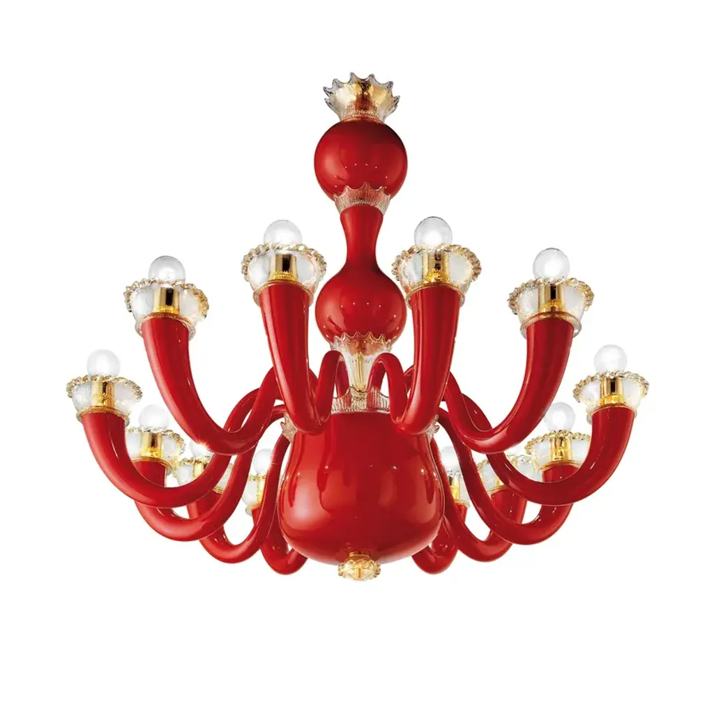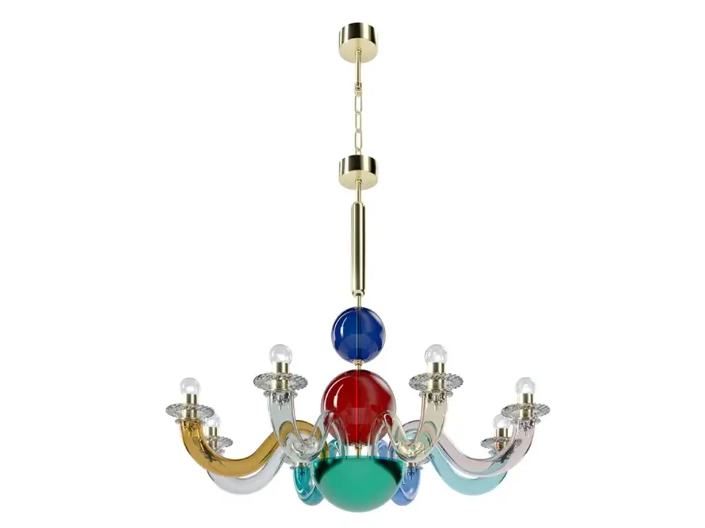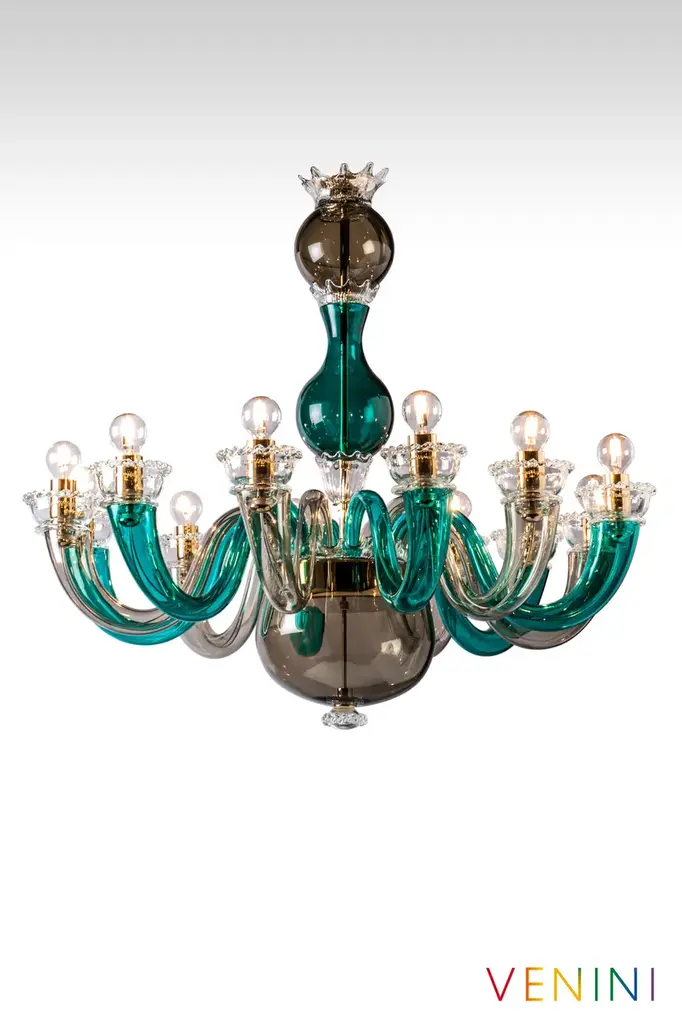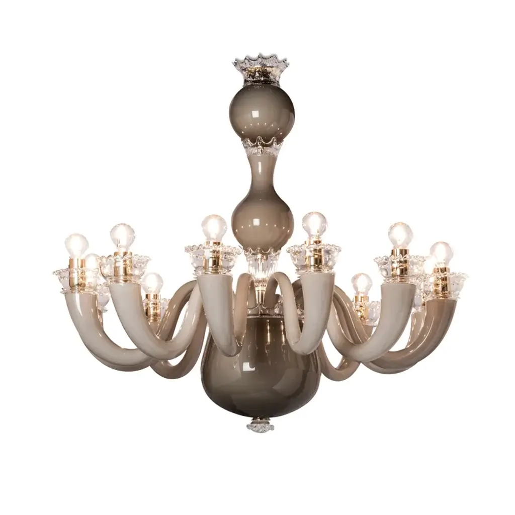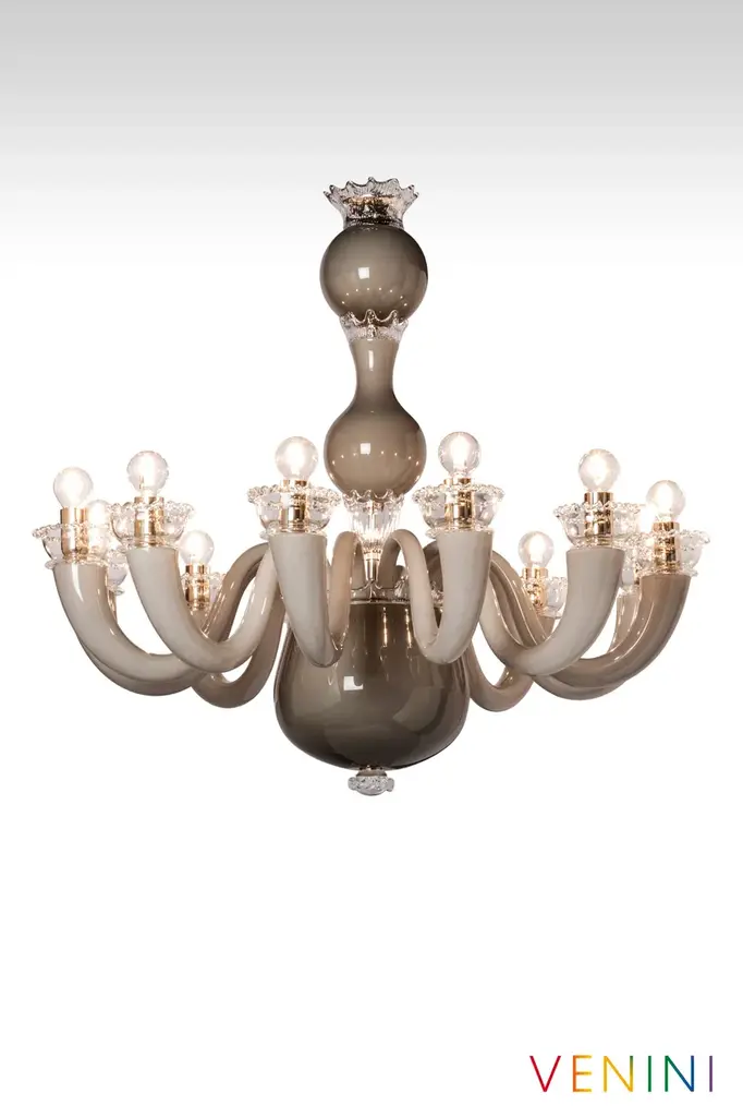 GioPonti 99.81 is a chandelier made of opaque blown glass. Another typical Gio Ponti creation, the shapely, curved forms if this chandelier have had us dreaming of elegant “Dolce Vita” interiors since 1946.A work of art. More than that, a myth. Gio Ponti 99.81 owes its undisputed modernity and originality to the boundless creativity of its creator, Gio Ponti. Its uniqueness lies in its monochrome or two-tone appearance, at times dotted with precious golden leaves. Gio Ponti 99.81 is available as a chandelier and a wall light.Colors:Coral / GOLD leafGrey / GreenOpal greyLight source:99.81.01.08 - 8 x max 8W LED E1499.81.01.12 - 12 x max 8W LED E14Edition numbered by year