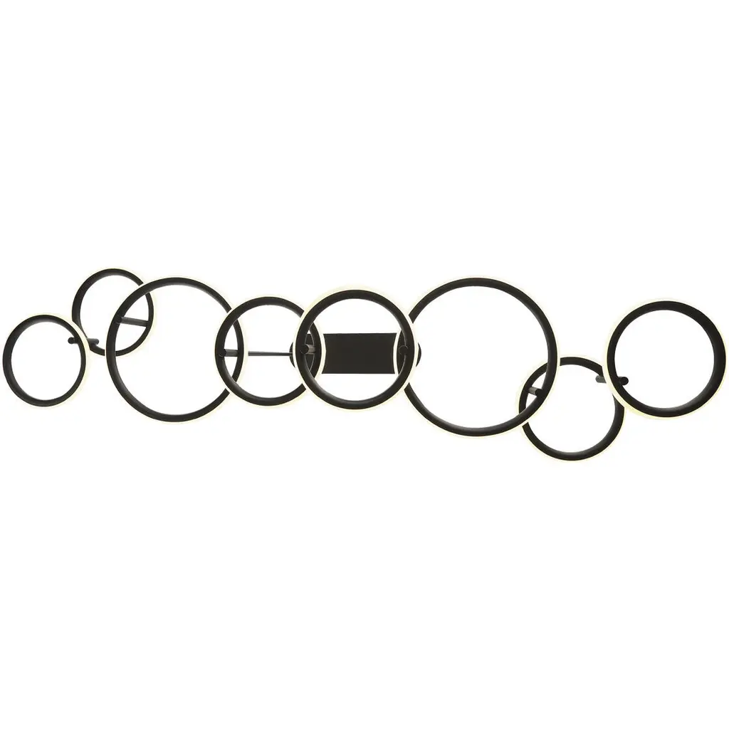 A whimsical display of halos pleasantly stacked together creates a layered form. The bright illumination is offset by a dark black finish for a strikingly brilliant piece. An interesting take on the simple halo, the Giro collection elevates this style into a more decorative element.