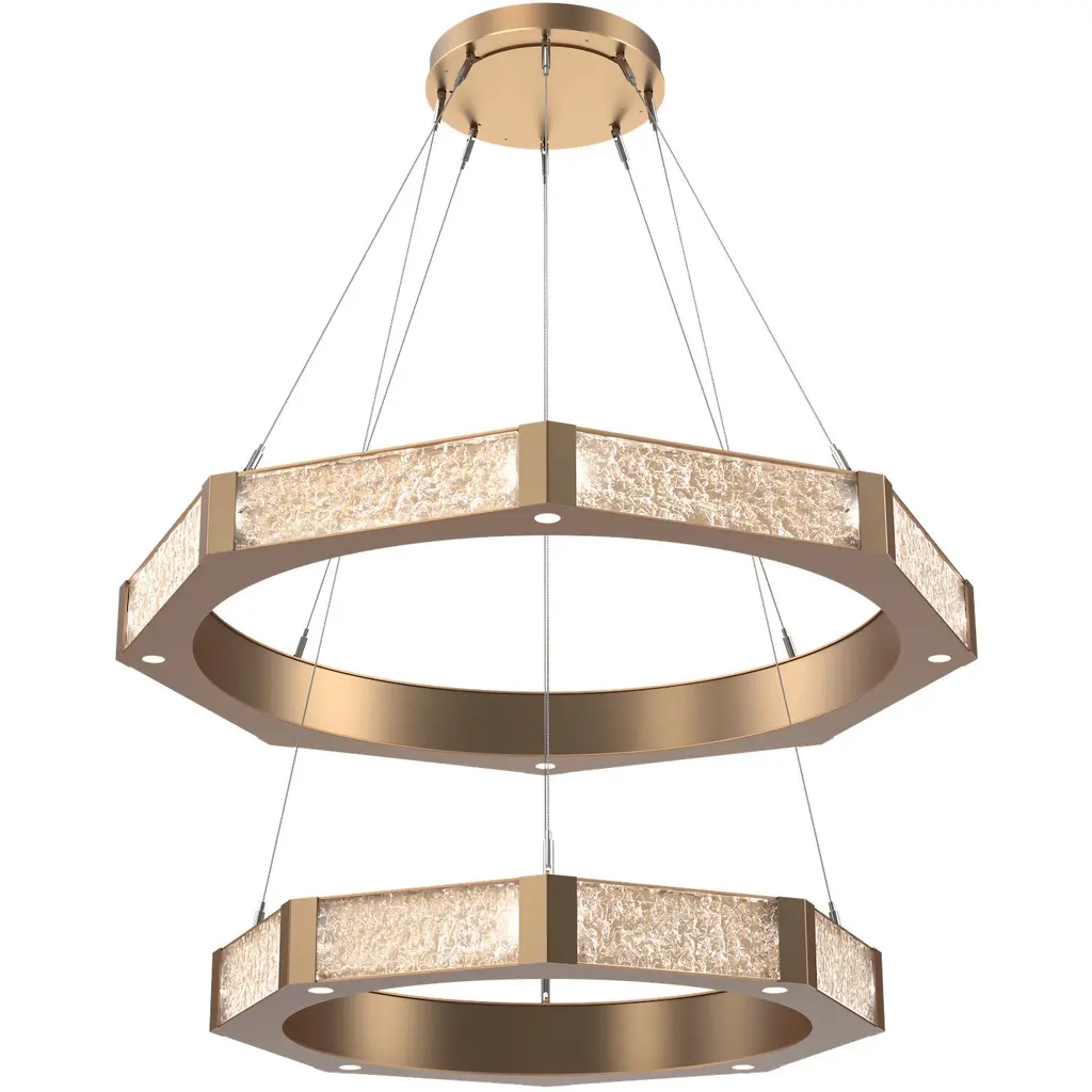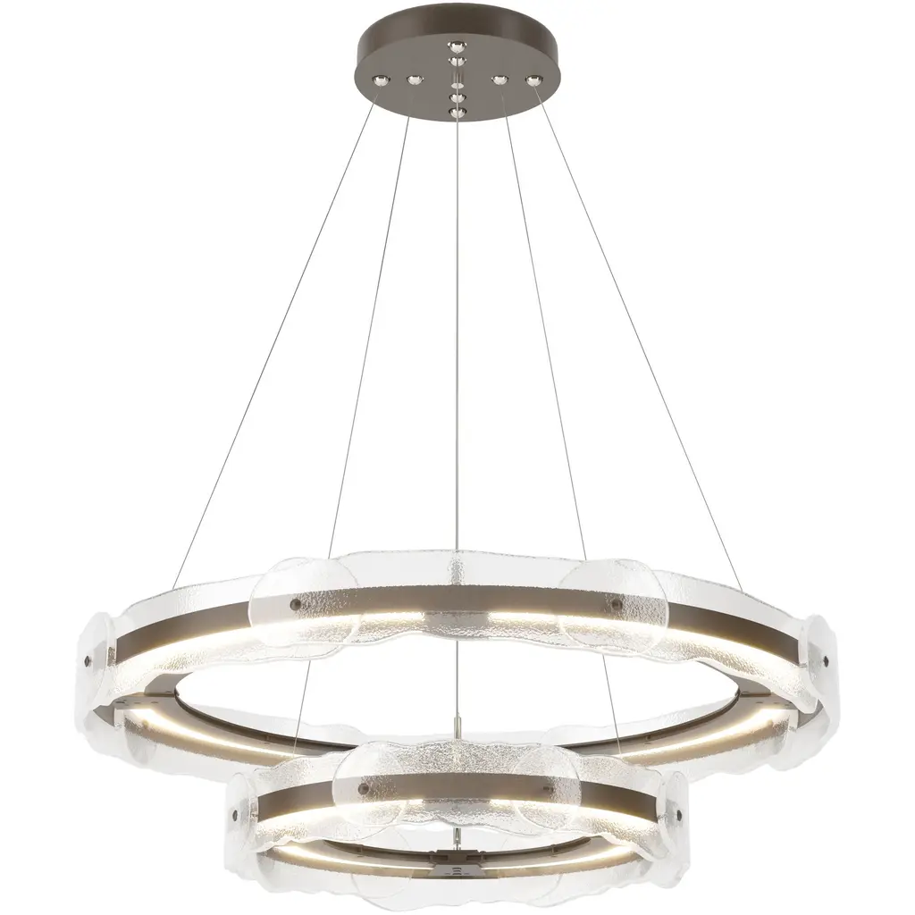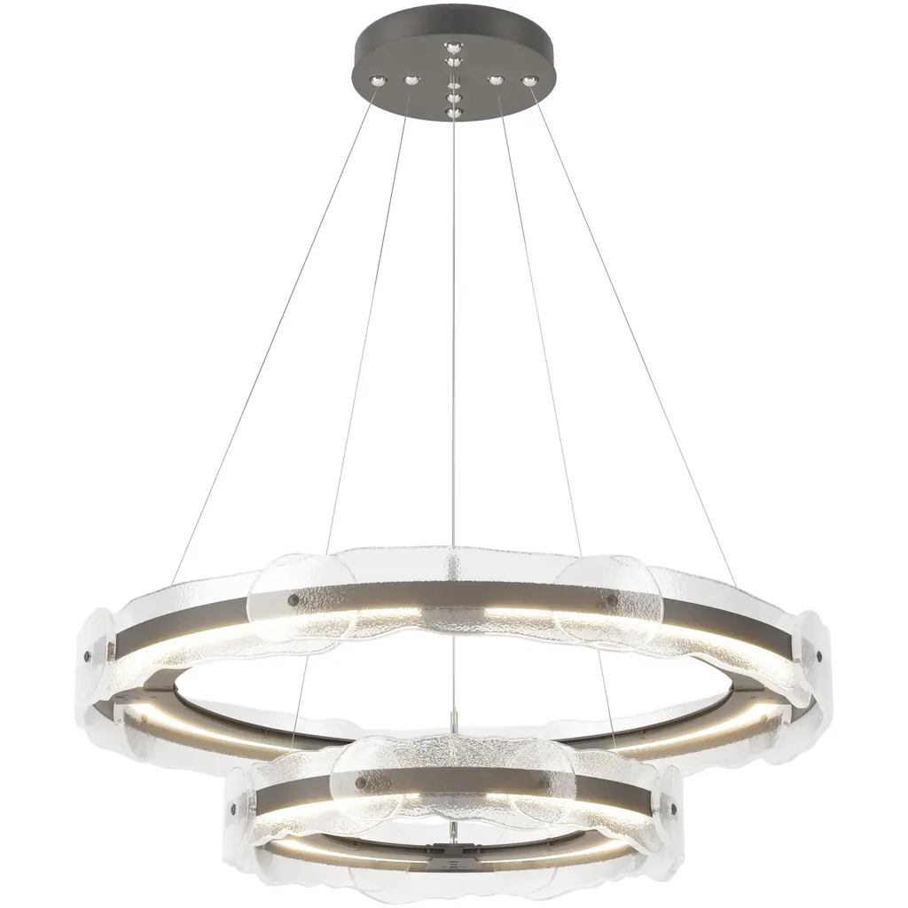 Glacier Double Tier - 2B-Graphite-Clear Textured Cast Glass-Stainless Steel Cable-LED