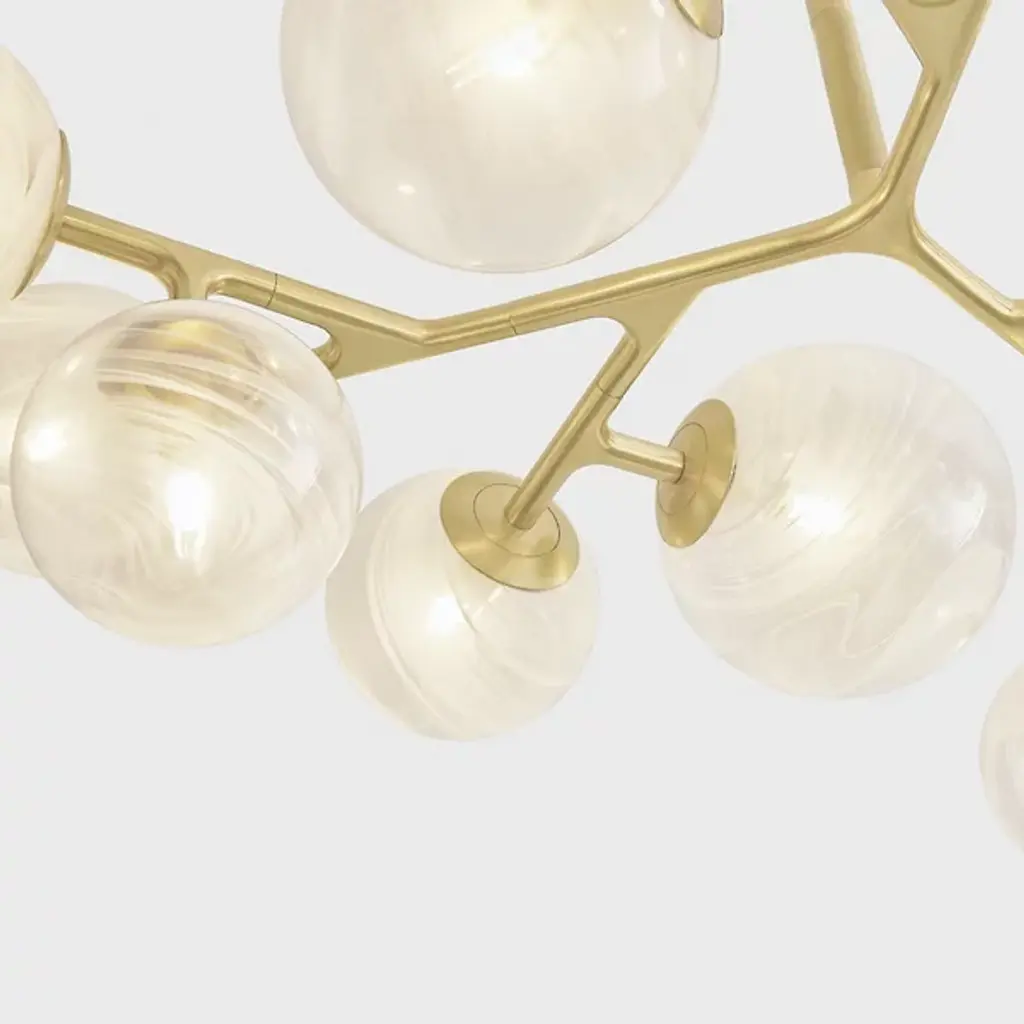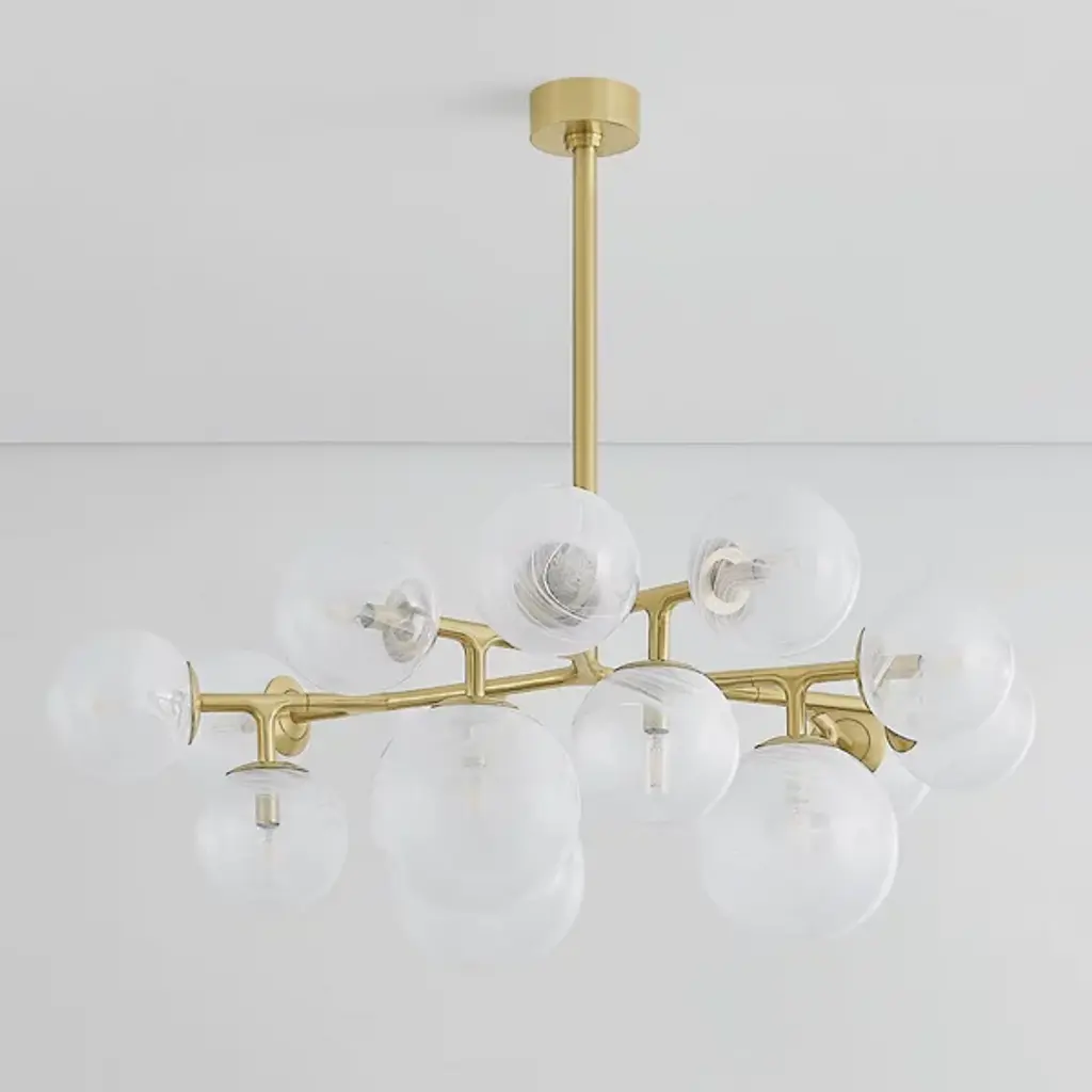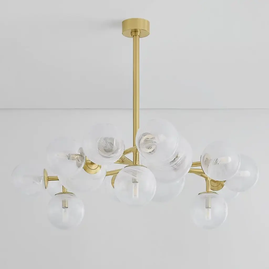 The Glasgow Chandelier from Corbett Lighting pulls inspiration from starlit Scottish nights. Handcrafted glass orbs contain swirling patterns that catch and scatter light like celestial bodies. The metal framework branches outward, each arm supporting a luminous sphere at a unique angle. This orbital arrangement creates an otherworldly display overhead. The design pays tribute to its namesake city by blending time-honored glass-making with modern aesthetics. This chandelier brings astronomical wonder indoors, elevating spaces with its constellation of illuminated globes.