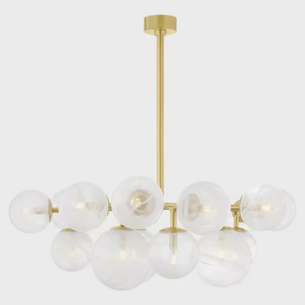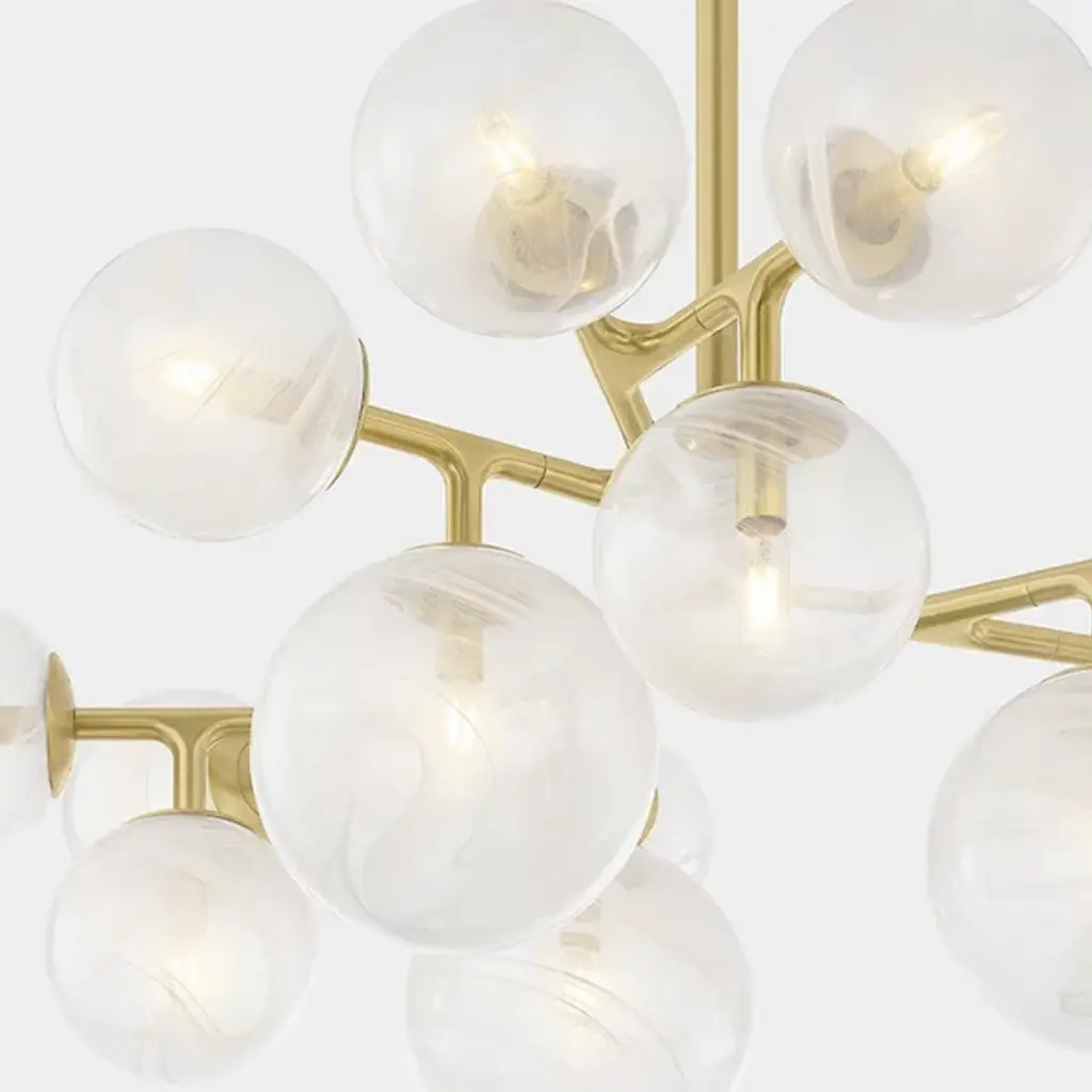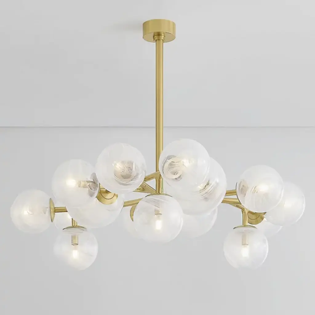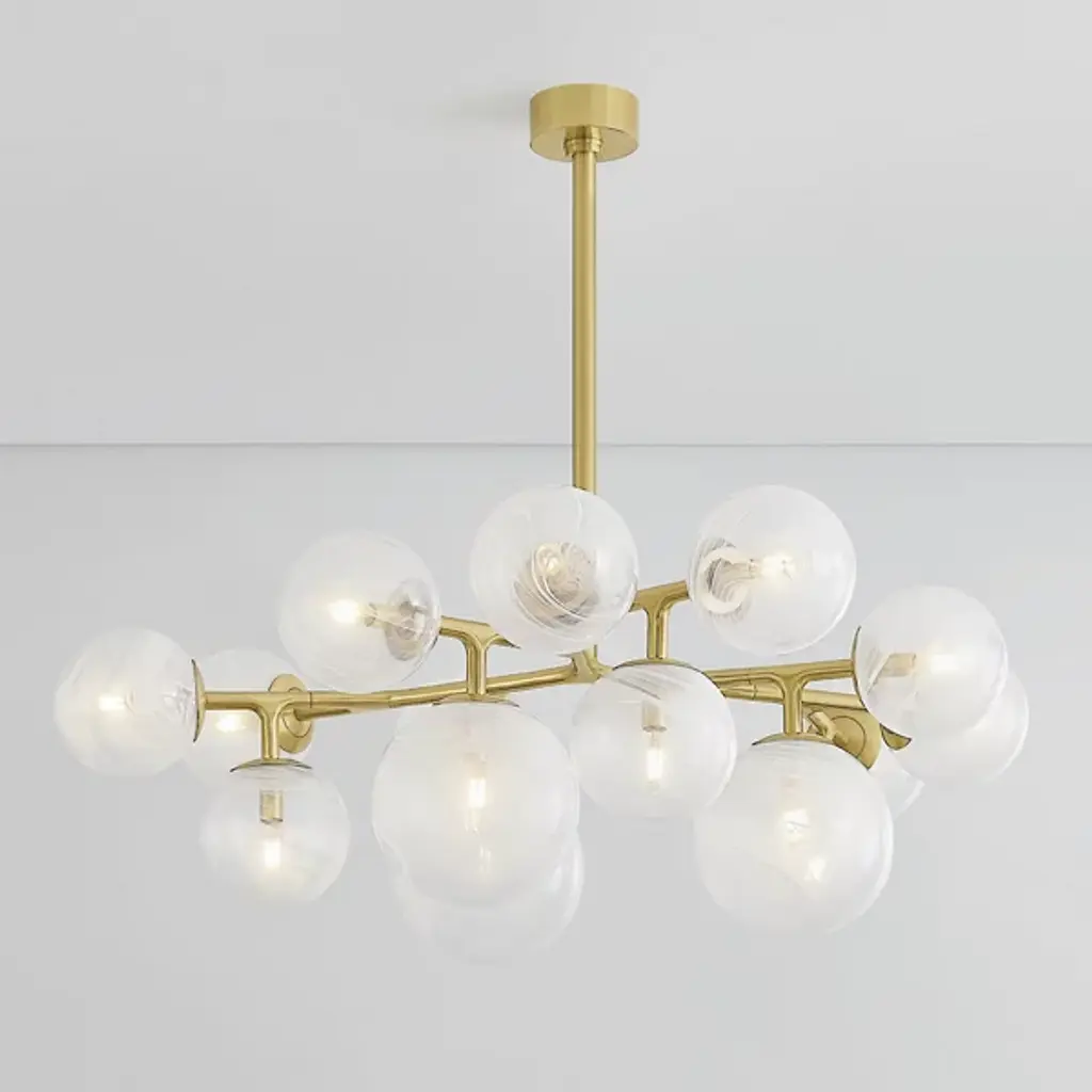 The Glasgow Chandelier from Corbett Lighting pulls inspiration from starlit Scottish nights. Handcrafted glass orbs contain swirling patterns that catch and scatter light like celestial bodies. The metal framework branches outward, each arm supporting a luminous sphere at a unique angle. This orbital arrangement creates an otherworldly display overhead. The design pays tribute to its namesake city by blending time-honored glass-making with modern aesthetics. This chandelier brings astronomical wonder indoors, elevating spaces with its constellation of illuminated globes.