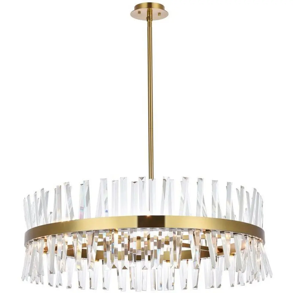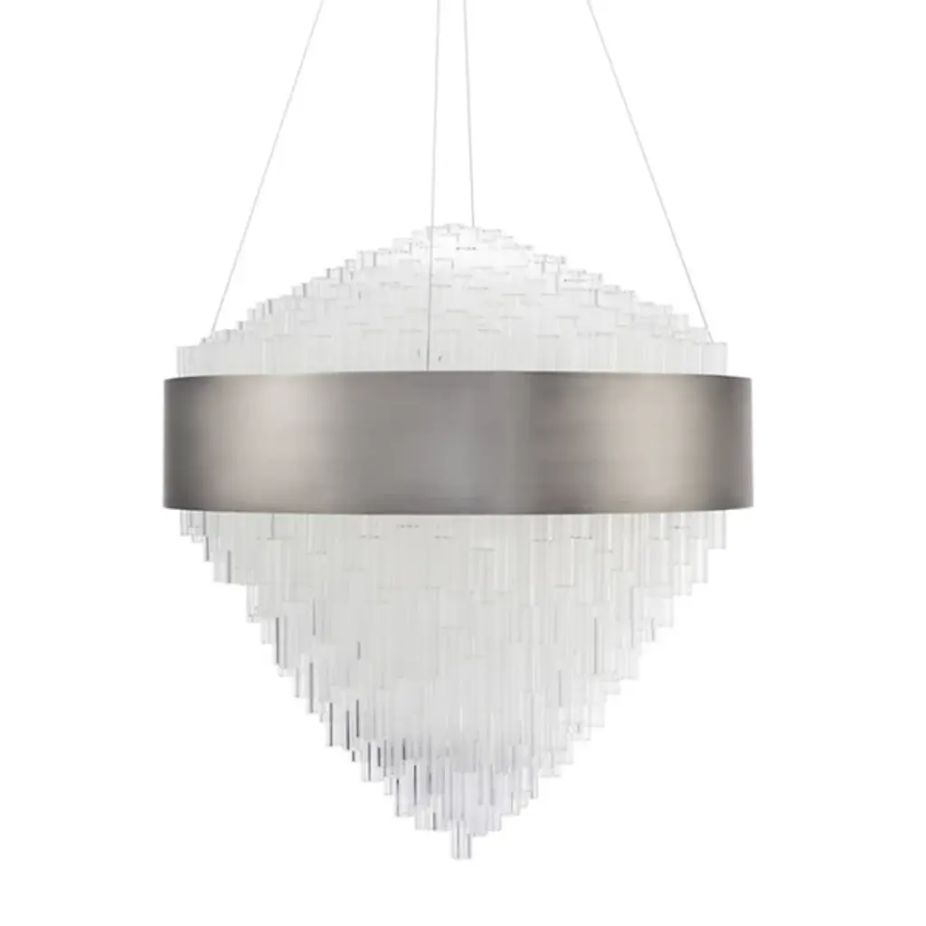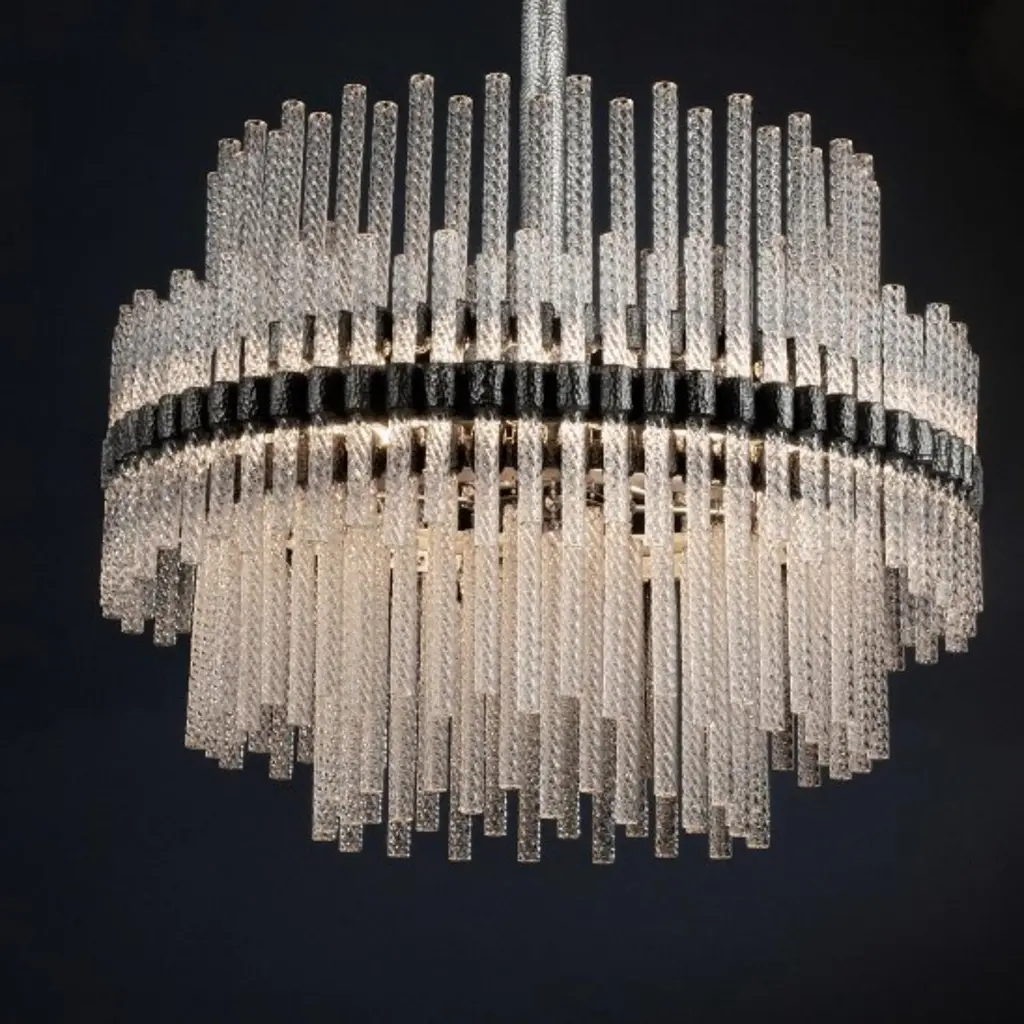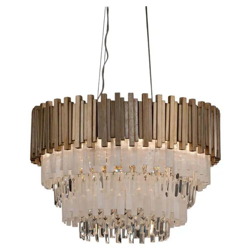 Glass Chandelier by AverDimensions: 84 x H 50 cmMaterials: Natural rocks, high-quality cut crystals, jewelry chains, hand-blown glass, other.Aver Design offers a possibility to really differentiate an interior project through decorative lighting. Our pieces are striking and timeless, they remain elegant regardless of the “trend” that in a short time will already be saturated and without personality.All our lamps can be wired according to each country. If sold to the USA it will be wired for the USA for instance.