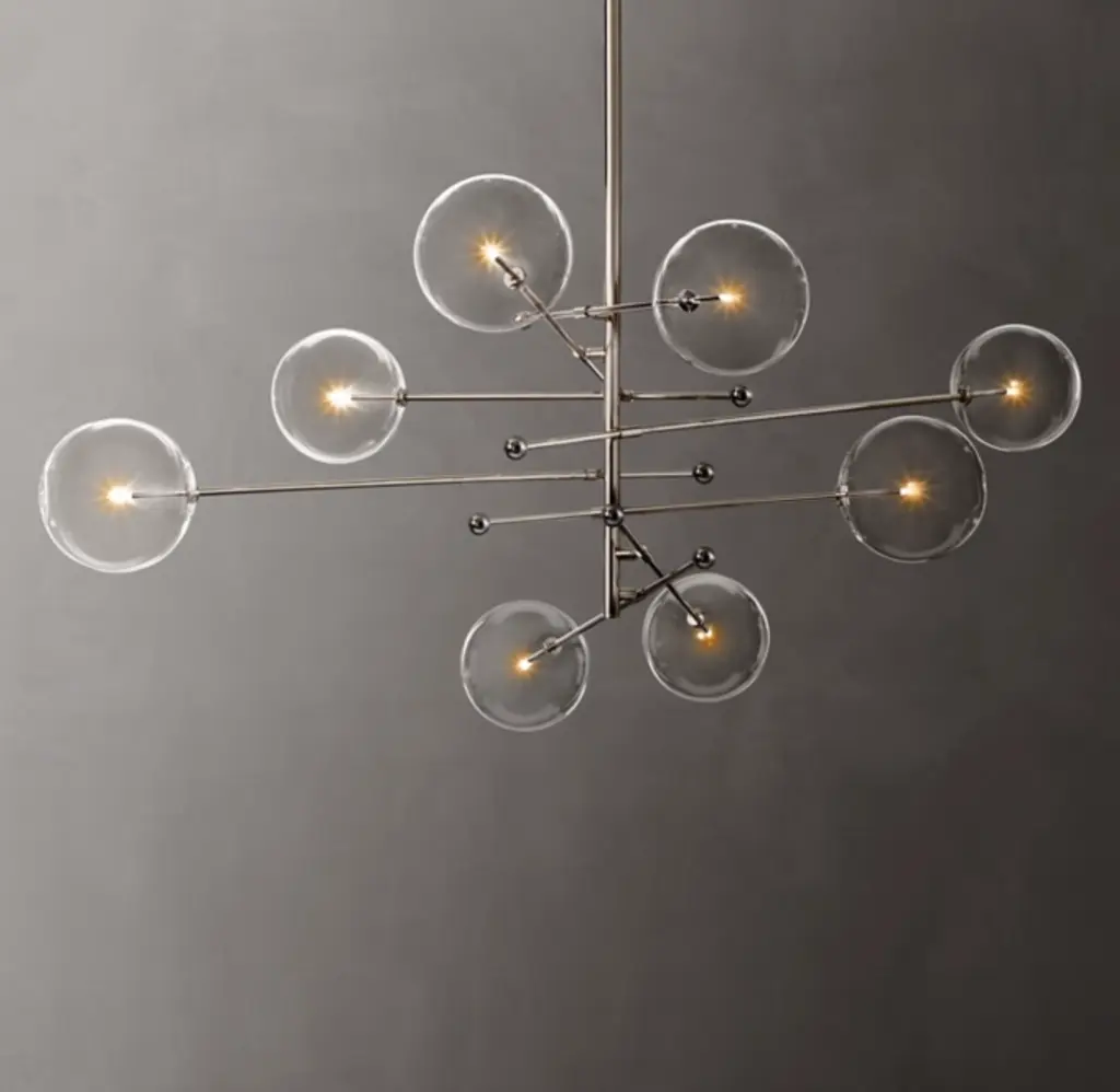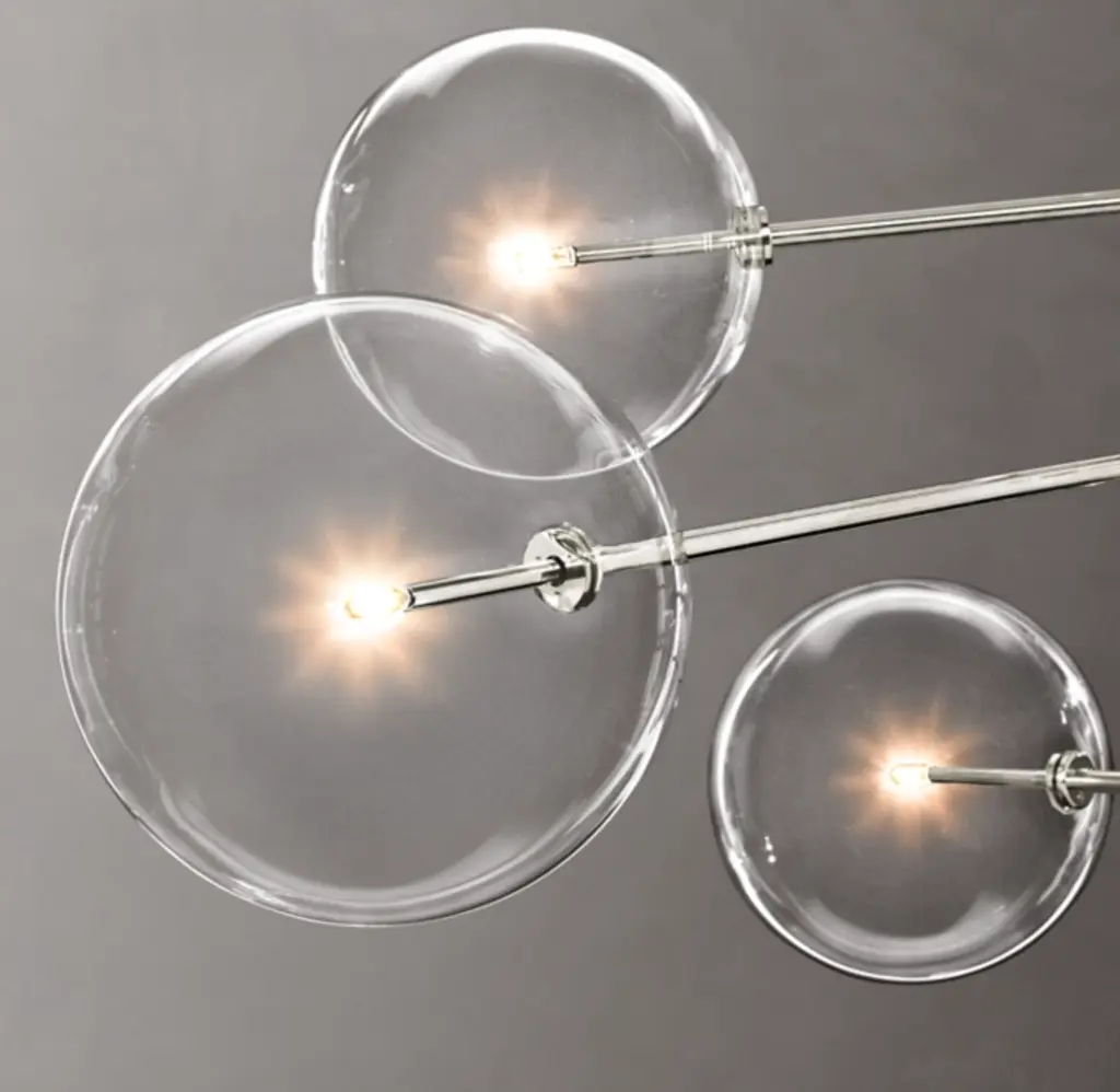 Delicate, handblown glass globes float at the ends of solid brass rods in our collection by designers Rudi Nijssen and Dominique Sente. Crafted in Poland by master glassmakers, each fixture conveys fluidity and motion yet is anchored in the pure modern architecture of its form.SHOP THE ENTIRE COLLECTION