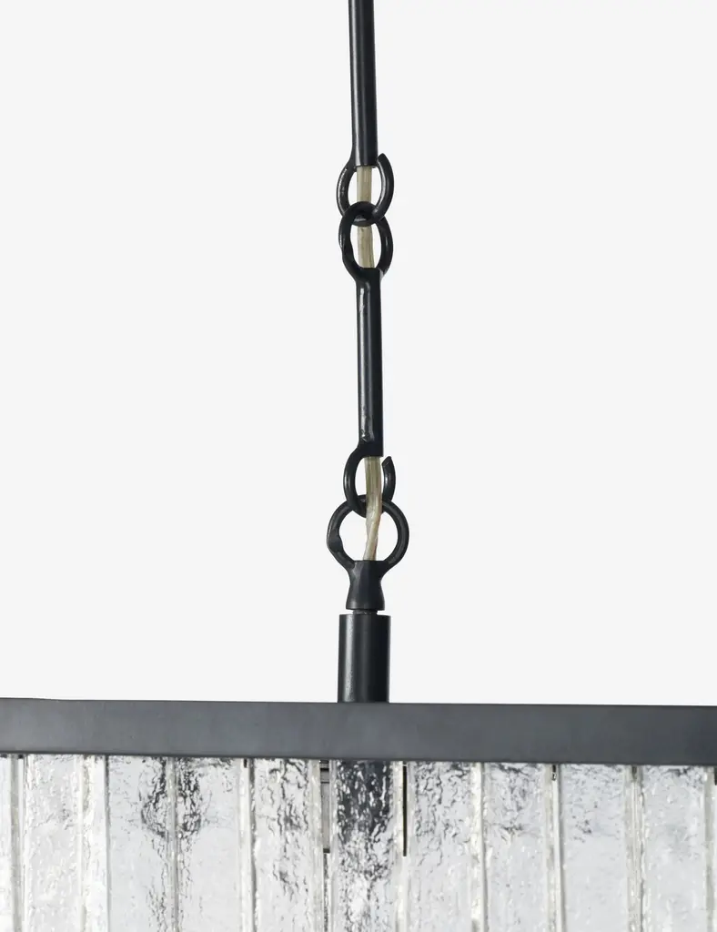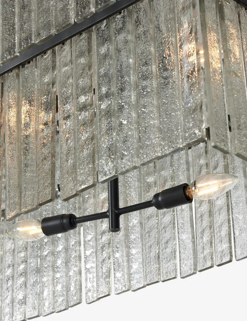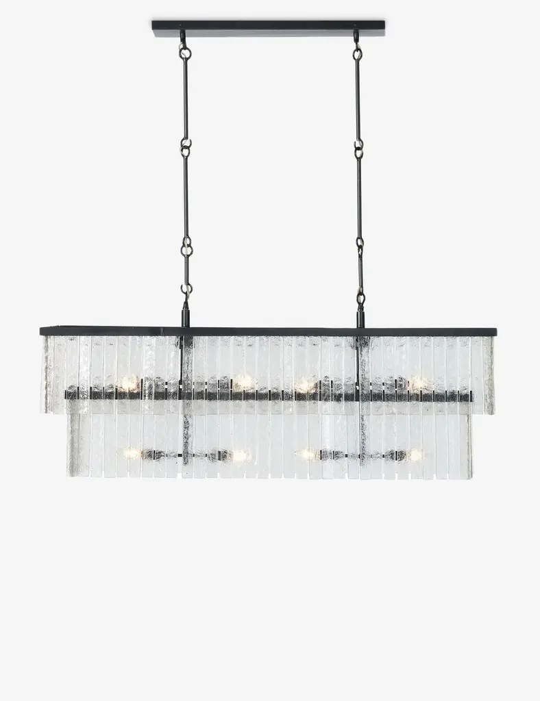 Lengths of textured glass refract light to stunning effect in the Gleason chandelier. Perfect as the centerpiece of your kitchen or dining room lighting, this linear chandelier elevates your edit with a modern edge.