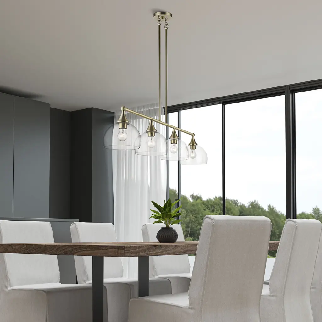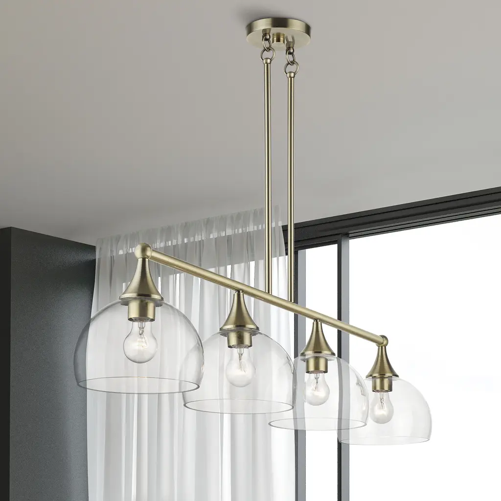 Glendon 4 Light 8.25 Inch Antique Brass Large Linear Chandelier Ceiling Light