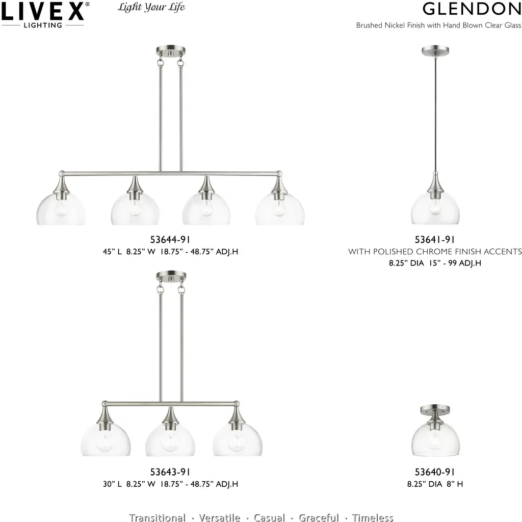 Glendon 4 Light 8.25 Inch Brushed Nickel Large Linear Chandelier Ceiling Light