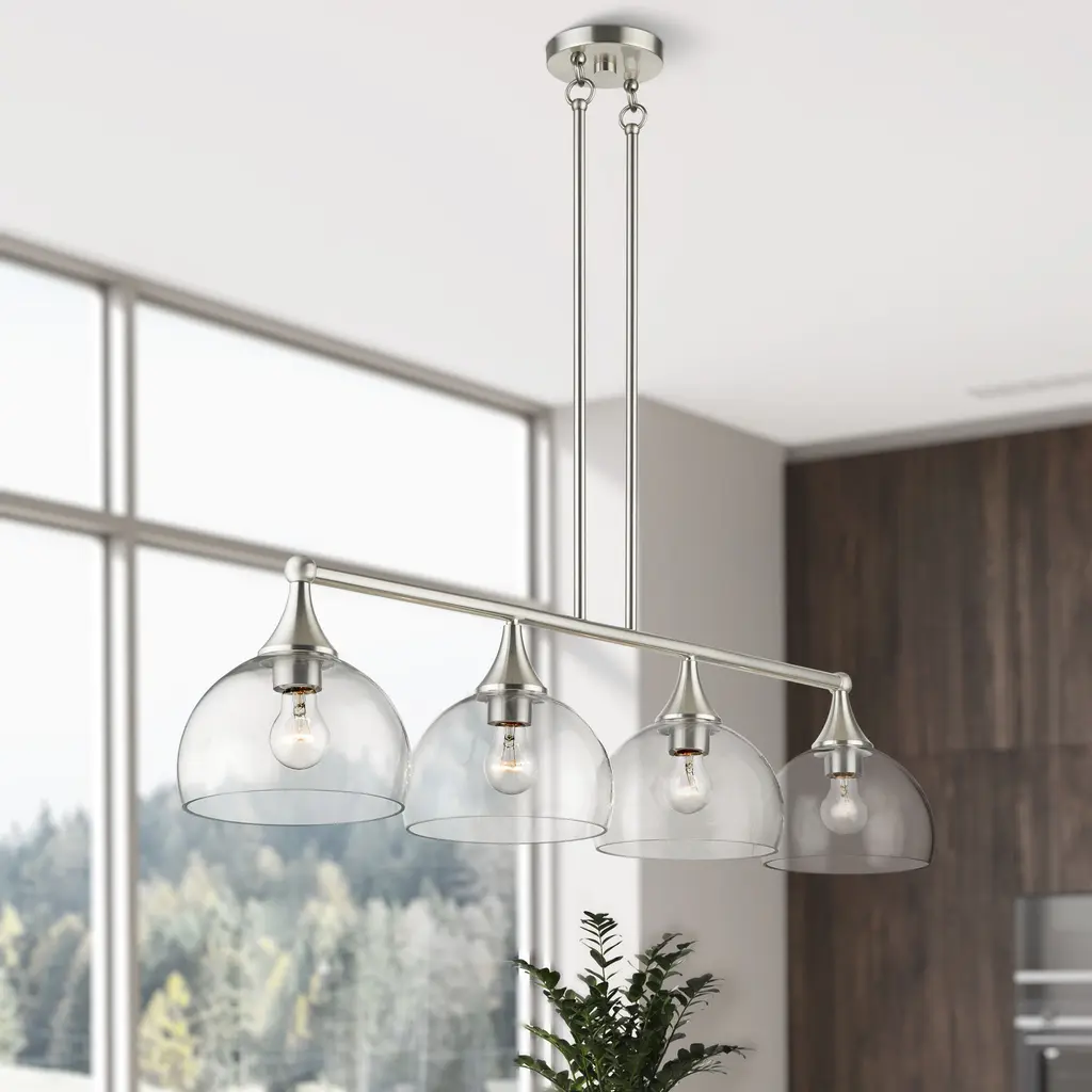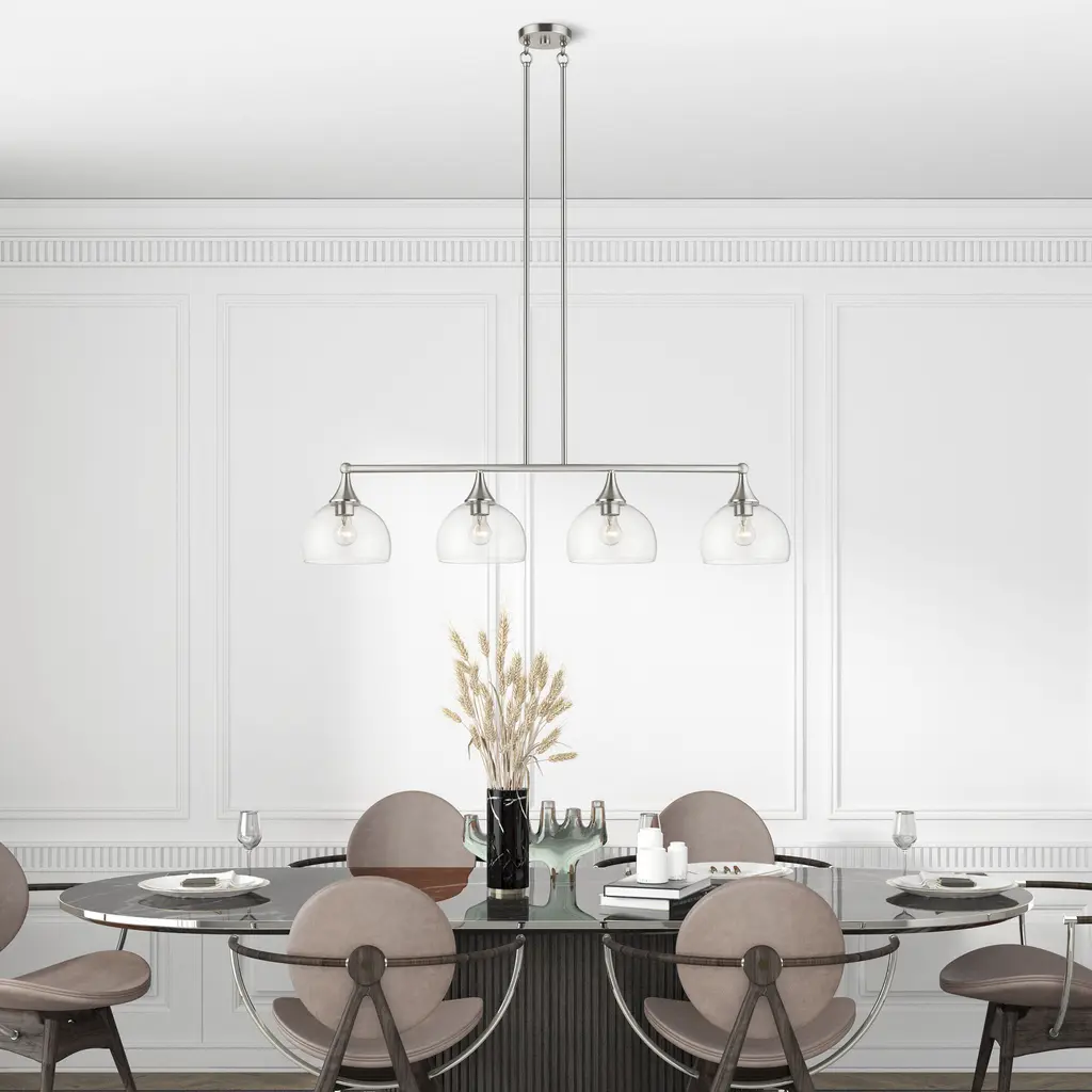 4 Light Brushed Nickel Large Linear Chandelier